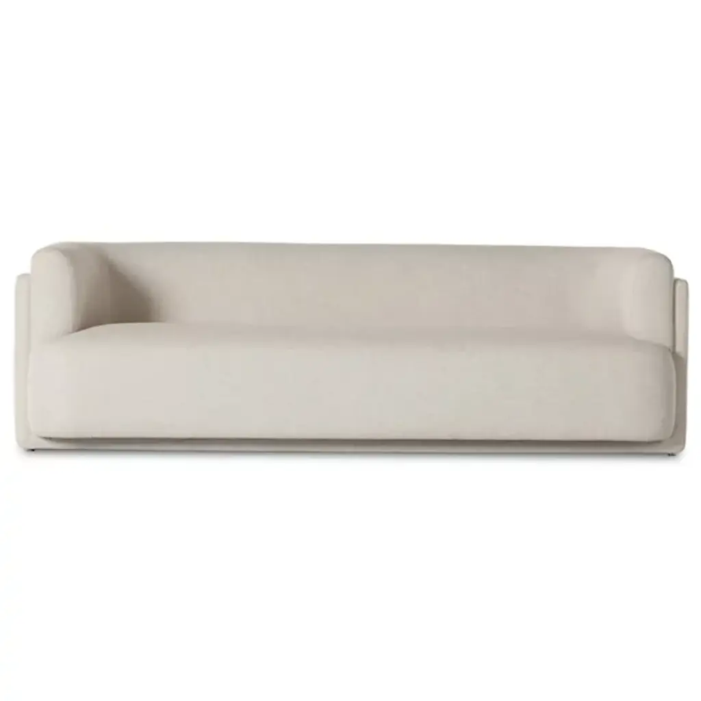 The Hartley Sofa from Four Hands modernizes everyday comfort through its innovative, fully upholstered outer frame design. The performance fabric blend of viscose, polyester, and linen defies daily wear while maintaining its pristine appearance. Built on a sturdy poplar plywood foundation, this sofa combines polyurethane foam and fiber filling to deliver exceptional support. The precisely engineered proportions and clean lines make this piece distinct from conventional sofas.