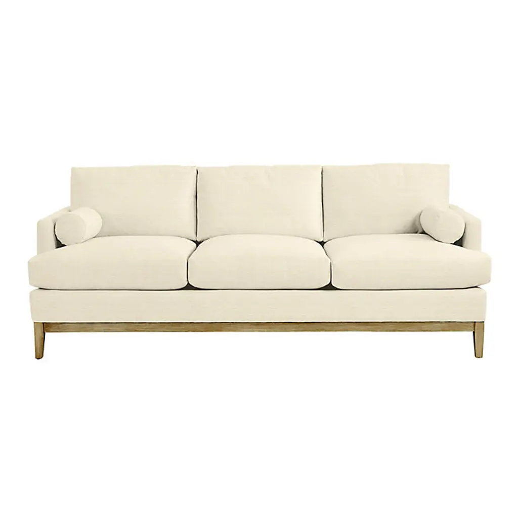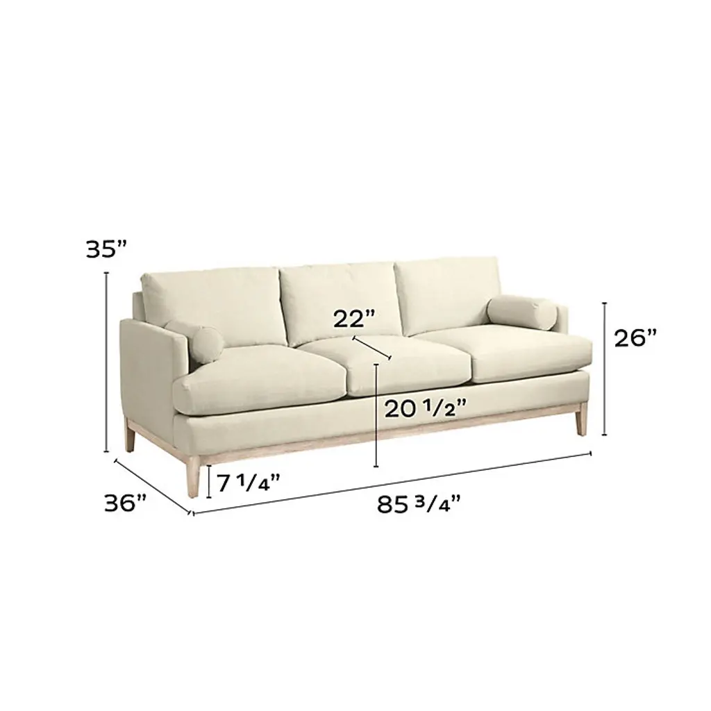 Our Hartwell 86-Inch Sofa is a sophisticated blend of clean, timeless lines and deep-seat comfort. Its tailored track arms, saddle stitching and straight-line, exposed wood skirt transition from contemporary to traditional spaces with confident style. Skirt and legs have warm Latte finish. This special edition of our popular Hartwell Sofa comes stocked and ready to ship in your choice of four beautiful, family-friendly performance fabrics. Hartwell 86-Inch Sofa features: Ballard Designs Performance Fabrics by InsideOut features: Ballard Designs Performance Fabrics by Sunbrella features: Ballard Designs Performance Fabric by Crypton Home features:
