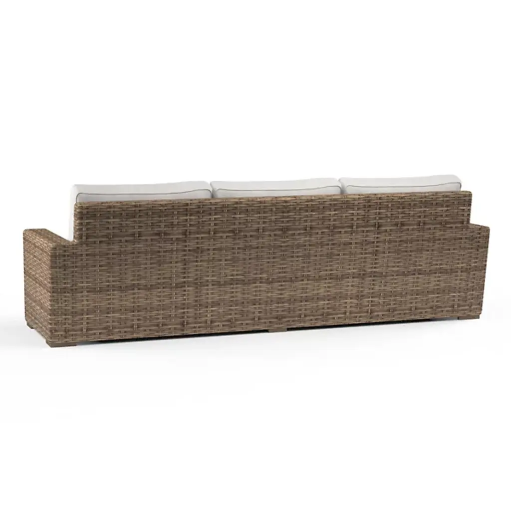 The Havana Outdoor Sofa from Sunset West brings together richly textured woven materials with generously scaled seating that invites relaxation. Its organic weave pattern creates depth and tactile interest across the frame's sturdy construction. Traditional wicker craftsmanship meets modern manufacturing techniques in this design that speaks to comfortable outdoor living. Plush cushioning nestles within the carefully constructed frame, while the exterior's woven texture adds warmth and character to any outdoor space through its approachable yet polished aesthetic.