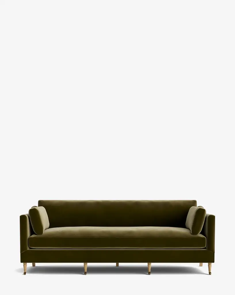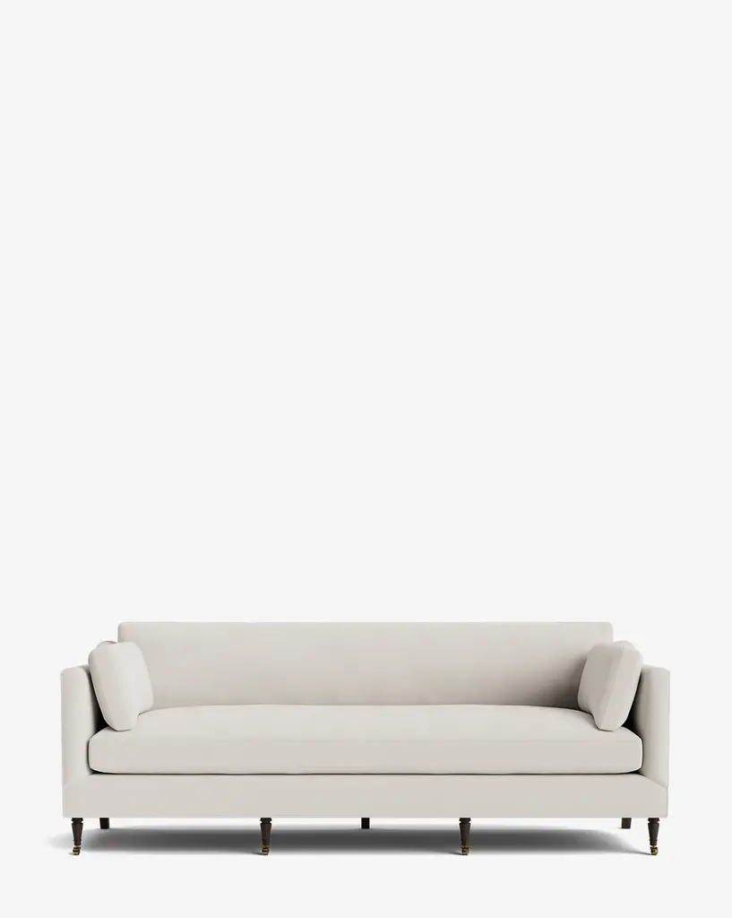 Our Haverford Upholstered Sofa 90" is a masterful combination of contemporary and classic elements. Handcrafted with luxurious comfort in mind, its cushions are filled with a feather blend around a high-strength suspension. The turned maple legs and shaped arms give the sofa a traditional, but approachable feel. Customizable in a wide array of fabrics, you can make this made-to-order piece entirely your own.