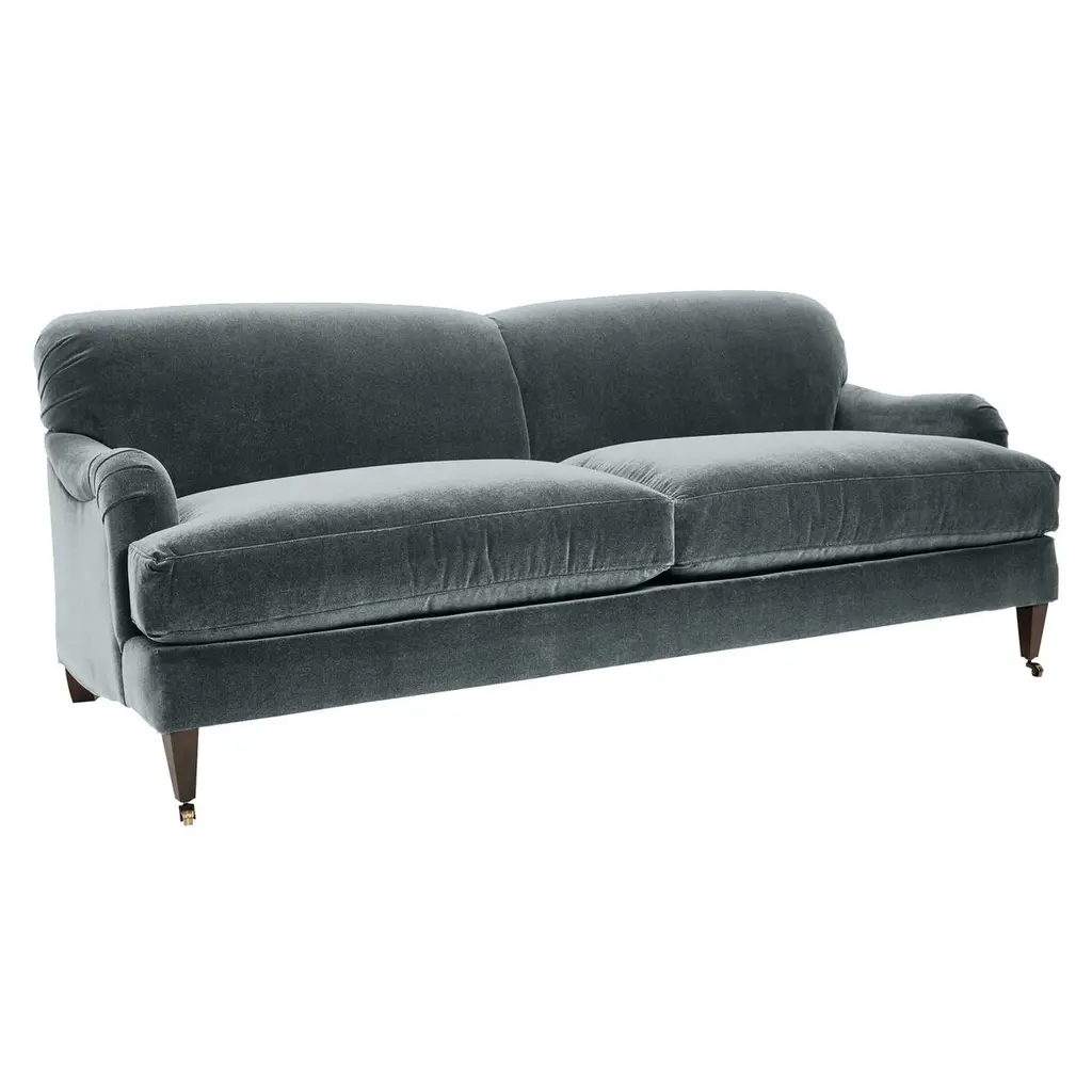 Available only at One Kings Lane: With a kiln-dried hardwood frame, neatly tailored upholstery, and English arms, this sofa makes an elegant addition to your space. A feather-and-down fill ensures long-lasting comfort and support, while casters on the two front legs allow for easy mobility and help protect floors against scratching and marring. Handcrafted in the USA.