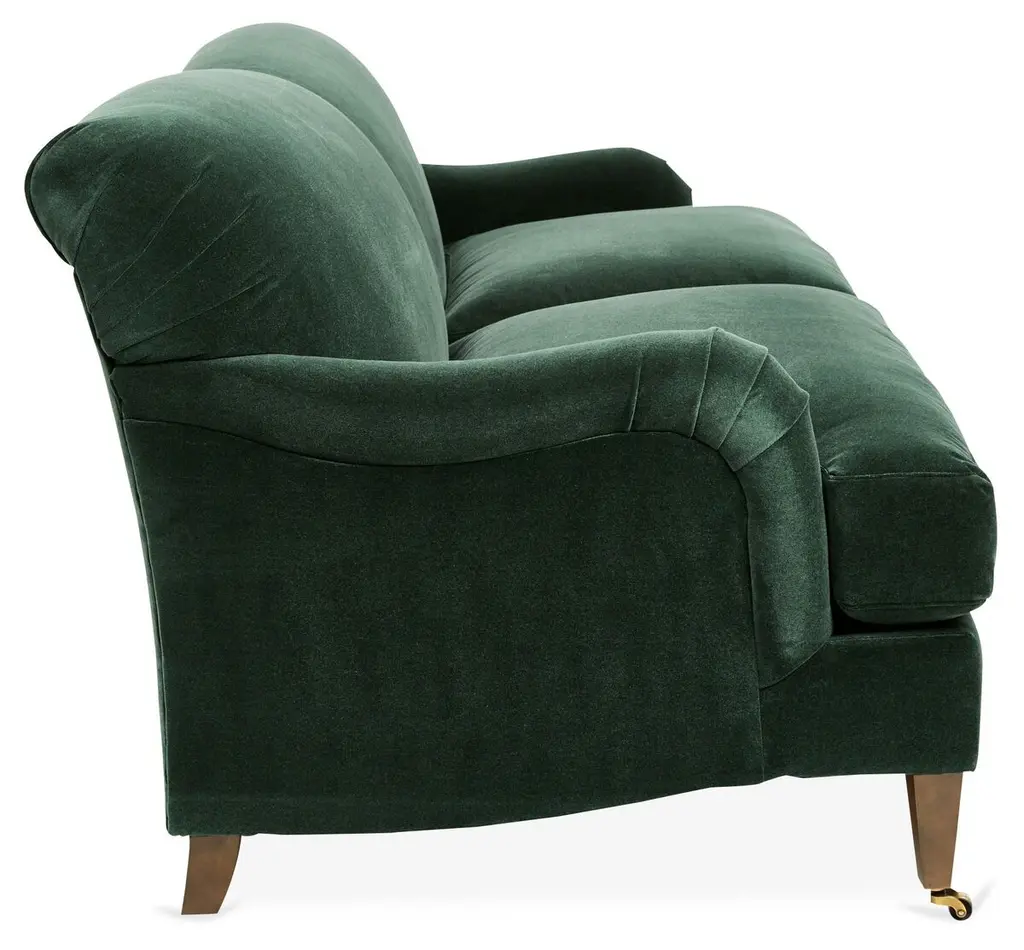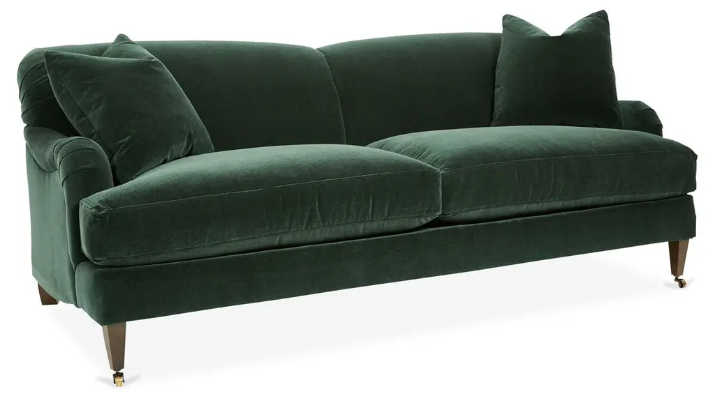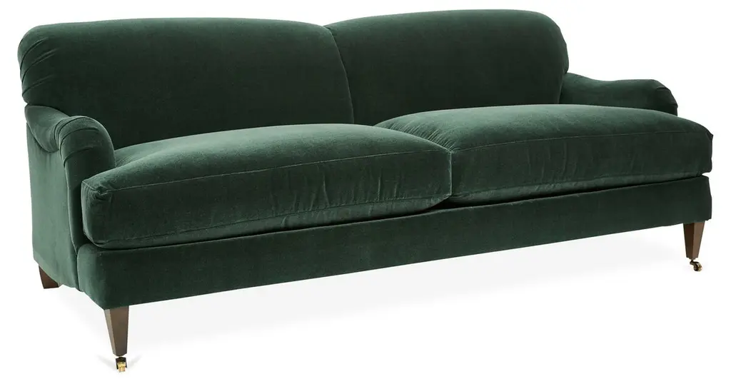 Available only at One Kings Lane: With a kiln-dried hardwood frame, neatly tailored upholstery, and English arms, this sofa makes an elegant addition to your space. A feather-and-down fill ensures long-lasting comfort and support, while casters on the two front legs allow for easy mobility and help protect floors against scratching and marring. Handcrafted in the USA.