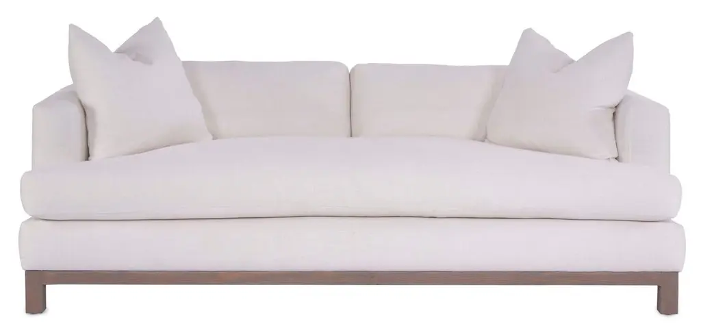 Clean-lined and classic, this sofa complements just about any decor. The bare wood base and slender legs give it an unexpected airiness. And don't be scared off by the white upholstery: It's treated to resist stains and clean easily (and it's eco-friendly too!). Handcrafted of hardwood that's been kiln-dried for maximum stability, the sofa's frame is built with mortise-and-tenon, double dowel, and corner-block construction to withstand years of use. The heavy-gauge steel spring system ensures long-lasting comfort.