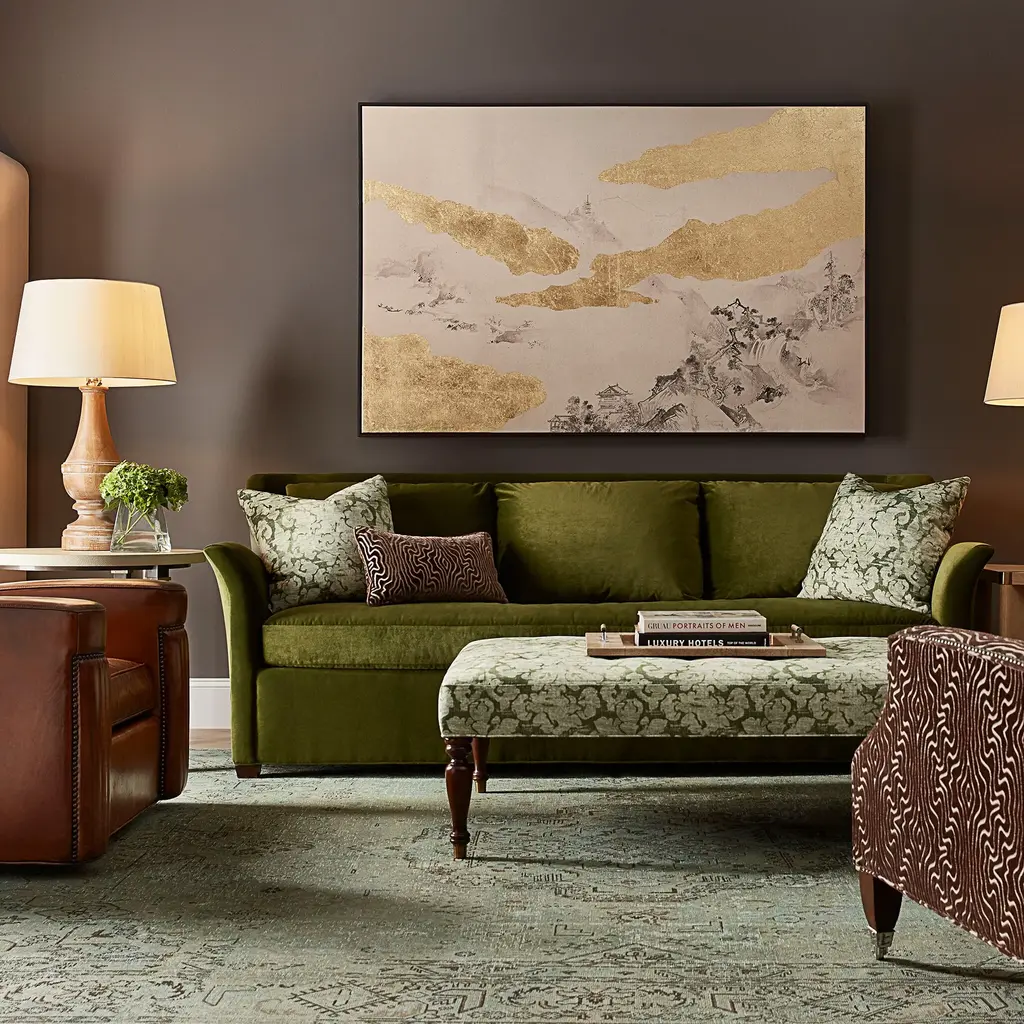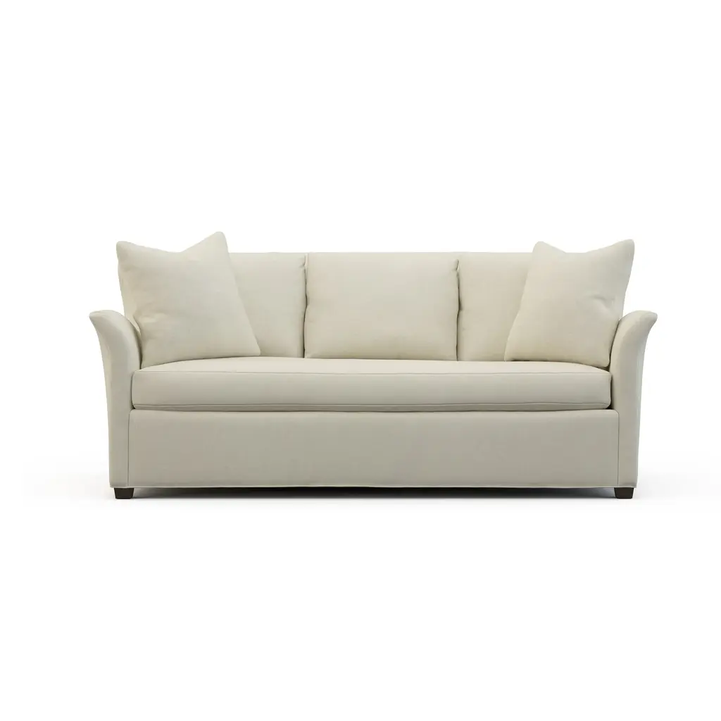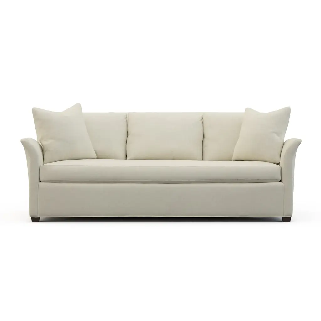 The Heron Sofa is a modern wingback sofa with splay arms, combining striking design with exceptional comfort. Exuding sophistication and relaxed luxury, it features a high back and sculptural shape that makes a bold statement in any room. If you're seeking a modern sofa, the Heron Sofa offers both style and comfort making it the ideal sofa for your space. Ships In 8-10 Weeks Three loose back pillows One loose seat cushion As Shown Fabric: Rayburn Oatmeal, Spillman Olive (lifestyle) As Shown Finish: Antique Walnut If you choose to purchase COM, once you have placed your order a customer service rep will contact you regarding where to send your fabric. Please note that current lead time is 17-19 weeks once your fabric arrives at the factory, and if unused fabric is under 1.5 yards, it cannot be sent back to you.This product can be special ordered in additional fabrics, leathers, finishes, and cushion fillings. Click here to email us for for additional information about special ordering.This image is for illustrative purposes only. The colors shown are accurate within the constraints of lighting, photography, and the color accuracy of your screen.