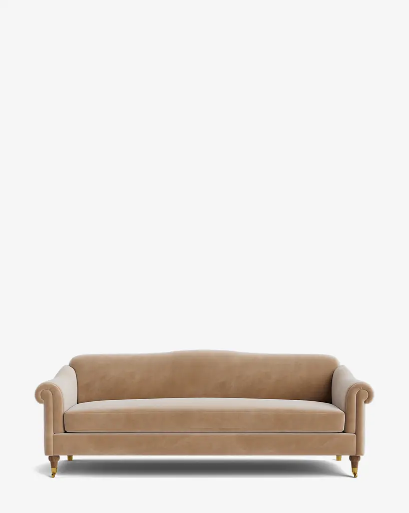 Blending modern and traditional design elements, our Hildegard Sofa 90" was designed with sophisticated lounging in mind. Its wrapped arms and camel back profile display masterful craftsmanship, while its single cushion design invites daily relaxation. From the bench-made alder frame to the down wrapped cushions, this sofa is the epitome of luxurious comfort. Customizable in a wide array of fabrics, you can make this handcrafted sofa your own.