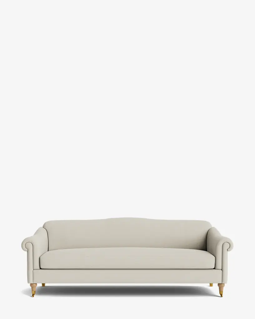 Blending modern and traditional design elements, our Hildegard Sofa 90" was designed with sophisticated lounging in mind. Its wrapped arms and camel back profile display masterful craftsmanship, while its single cushion design invites daily relaxation. From the bench-made alder frame to the down wrapped cushions, this sofa is the epitome of luxurious comfort. Customizable in a wide array of fabrics, you can make this handcrafted sofa your own.