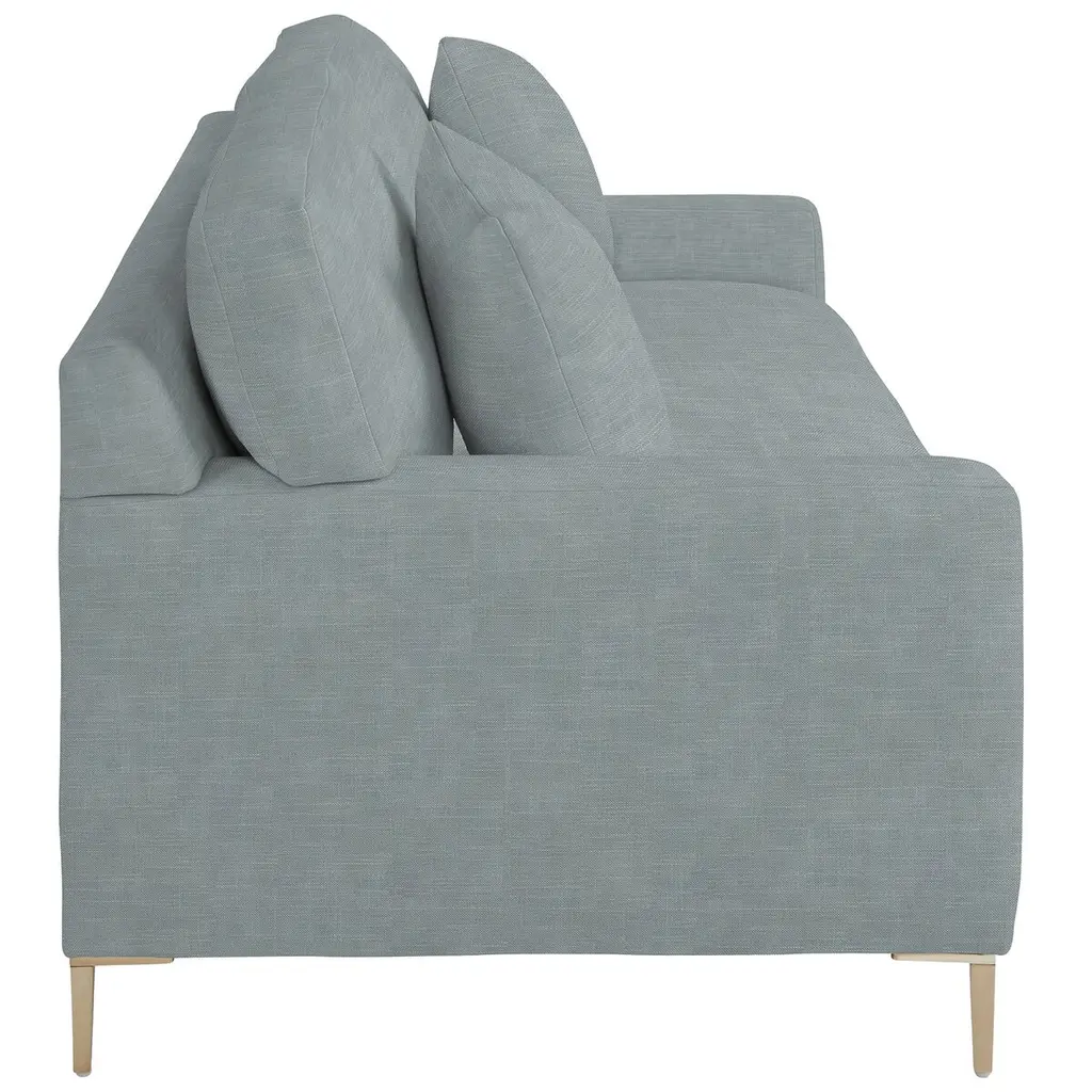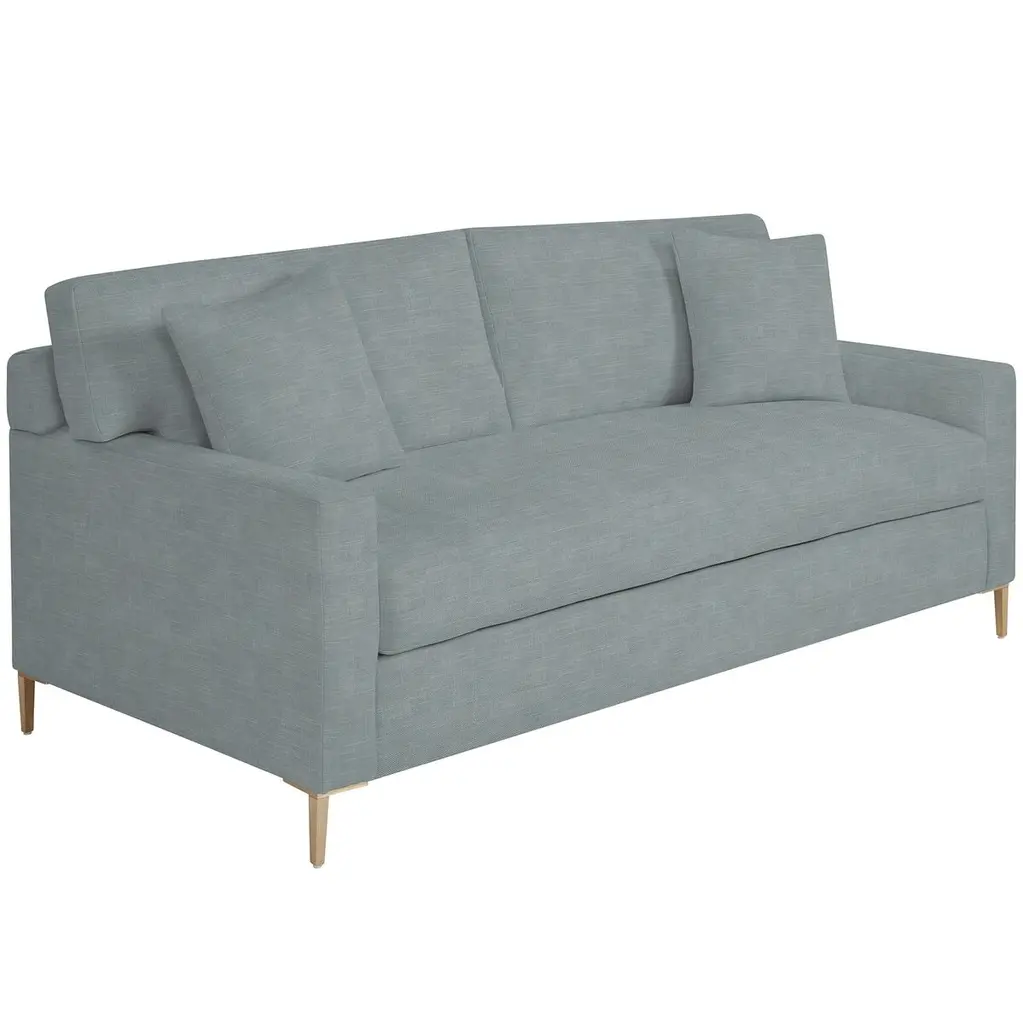 Exclusive to One Kings Lane: Defined by its crisp lines and brass leg design, this stylish sofa embodies a sleek, Scandinavian-inspired look. It is upholstered in Crypton--an eco-friendly high-performance fabric--which repels stains, spills, bacteria, and mold. Constructed of an engineered hardwood-laminate frame, eight-way hand-tied suspension system, and a spring foam cushion with down-proof ticking ensure long-lasting comfort and support. Each piece is handcrafted by skilled artisans in High Point, NC and offers a lifetime warranty on the frame and suspension system and a limited lifetime warranty on the seat cushion.