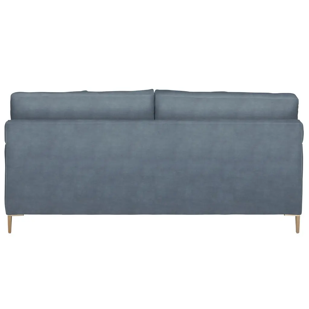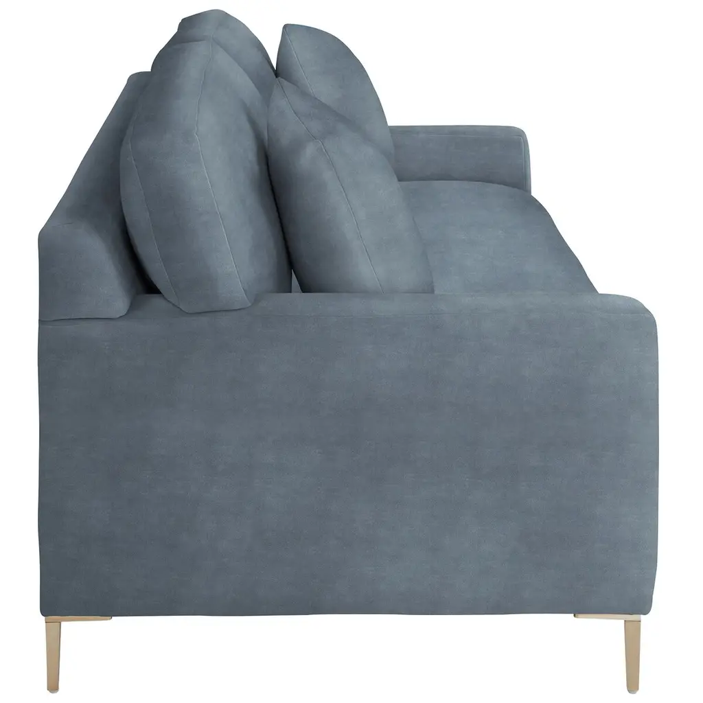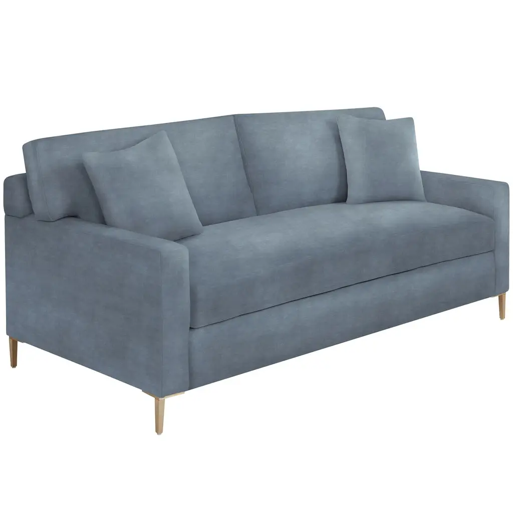 Exclusive to One Kings Lane: Defined by its crisp lines and brass leg design, this stylish sofa embodies a sleek, Scandinavian-inspired look. It is upholstered in Crypton velvet--an eco-friendly high-performance fabric--which repels stains, spills, bacteria, and mold. Constructed of an engineered hardwood-laminate frame, eight-way hand-tied suspension system, and a spring foam cushion with down-proof ticking ensure long-lasting comfort and support. Each piece is handcrafted by skilled artisans in High Point, NC and offers a lifetime warranty on the frame and suspension system and a limited lifetime warranty on the seat cushion.