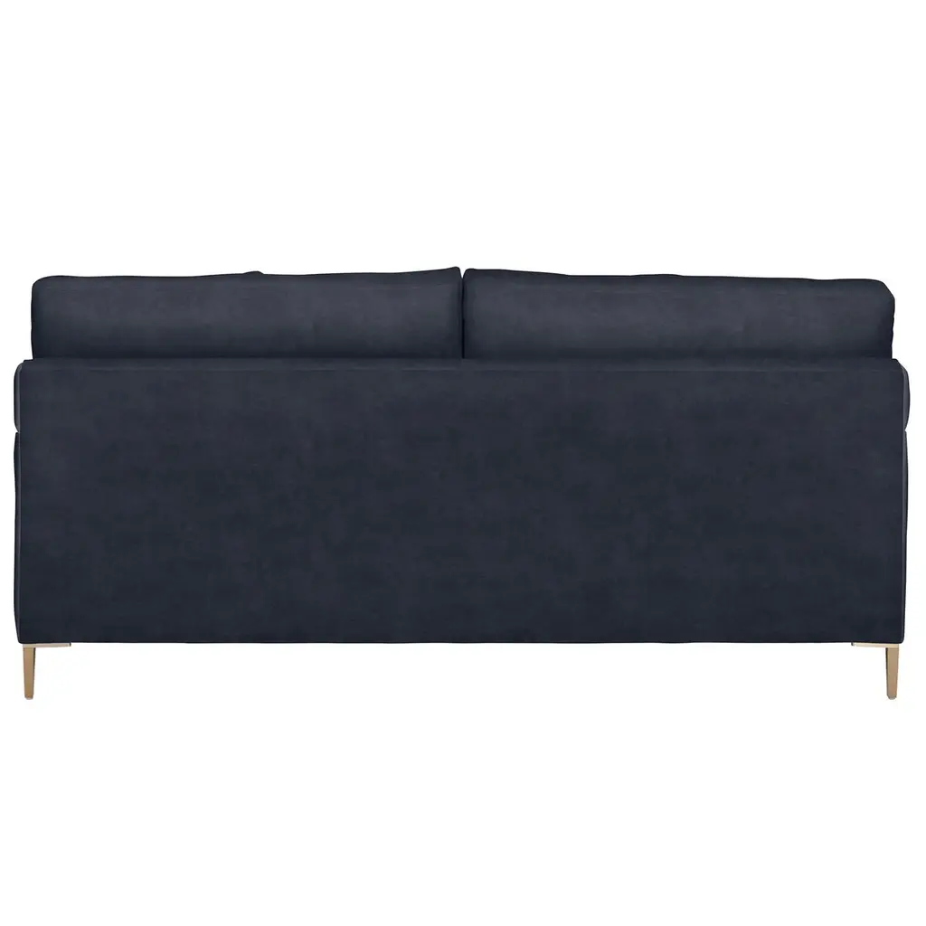 Exclusive to One Kings Lane: Defined by its crisp lines and brass leg design, this stylish sofa embodies a sleek, Scandinavian-inspired look. It is upholstered in Crypton velvet--an eco-friendly high-performance fabric--which repels stains, spills, bacteria, and mold. Constructed of an engineered hardwood-laminate frame, eight-way hand-tied suspension system, and a spring foam cushion with down-proof ticking ensure long-lasting comfort and support. Each piece is handcrafted by skilled artisans in High Point, NC and offers a lifetime warranty on the frame and suspension system and a limited lifetime warranty on the seat cushion.