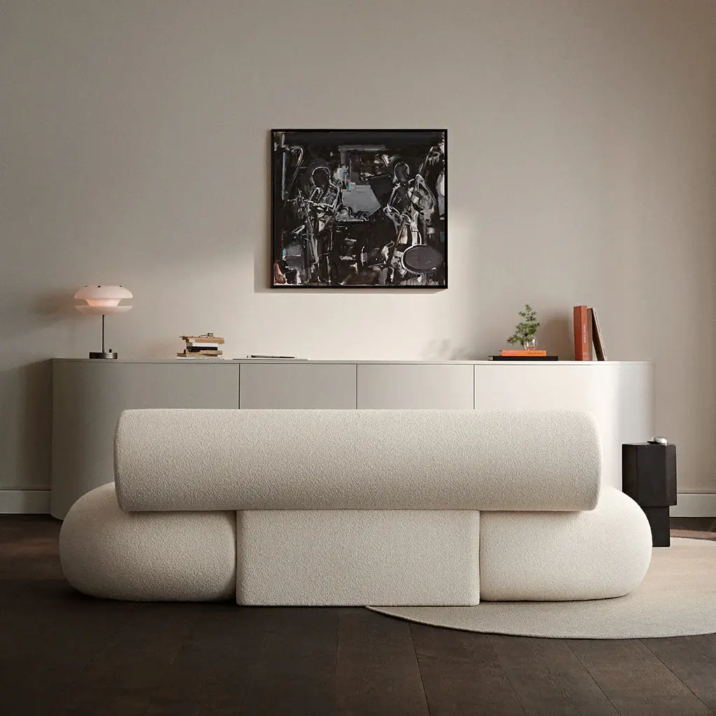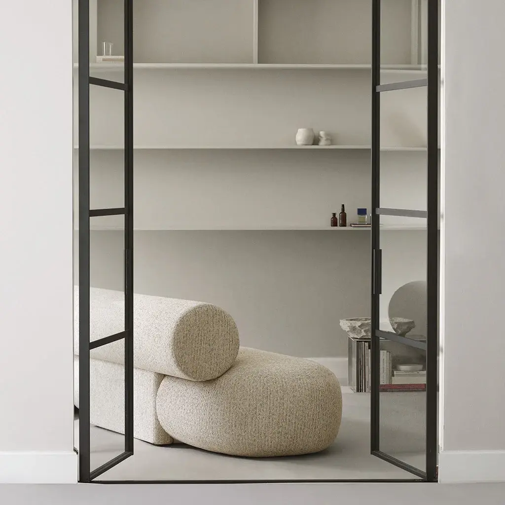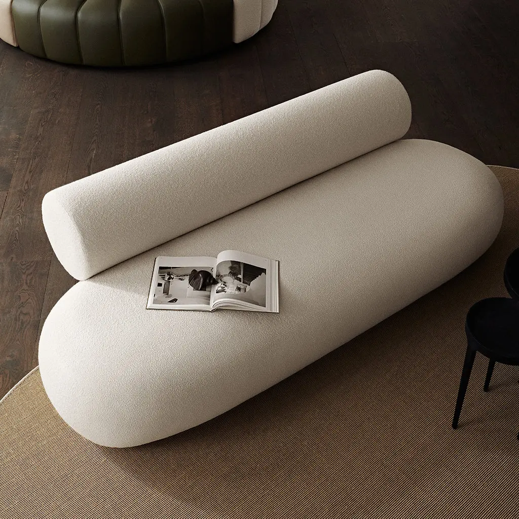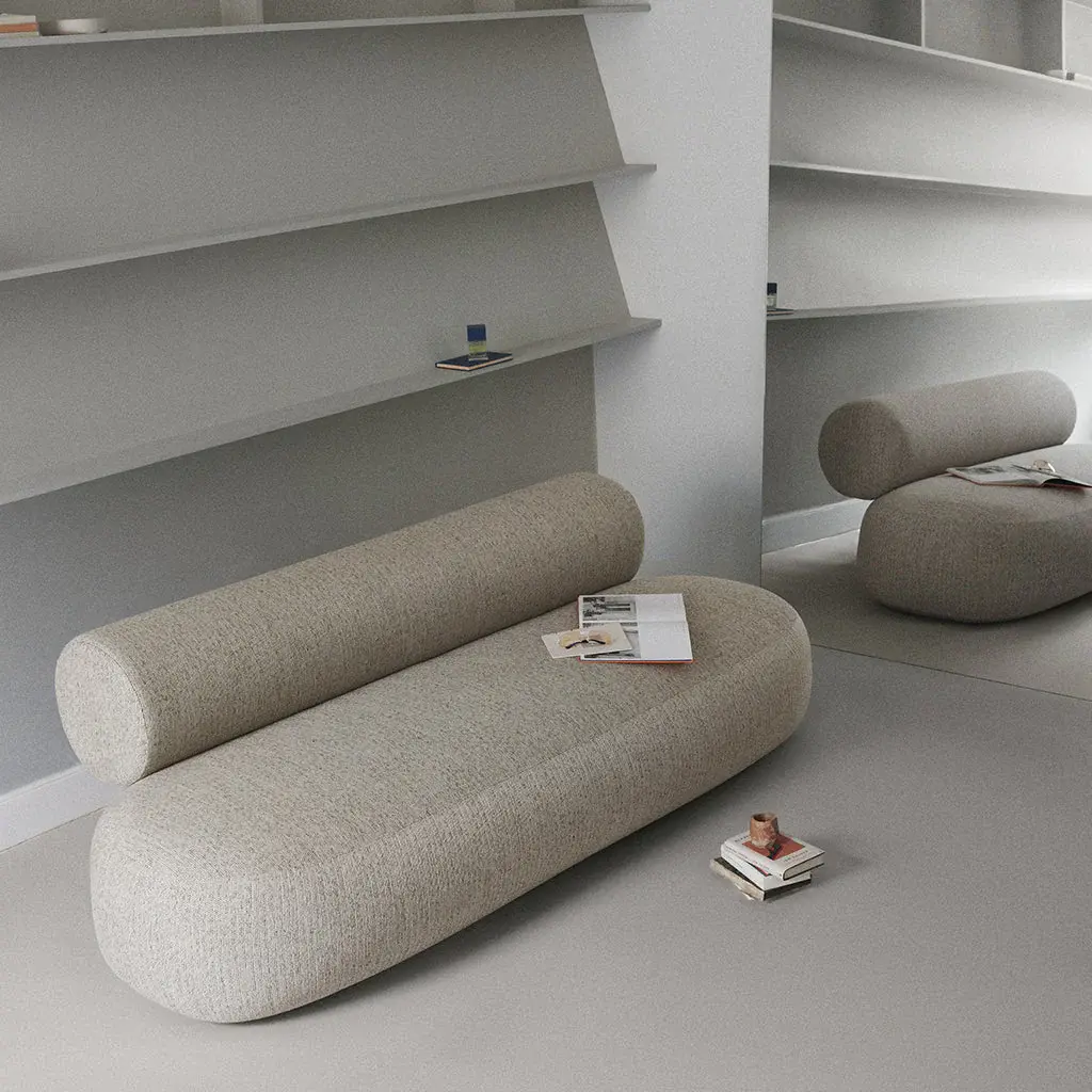 The Hippo Sofas rounded, soft shapes are inspired by the hippopotamus and classic 70s furniture silhouettes, with a strong, barrel-like design. It features a fully upholstered seat and back, providing luxurious comfort while seating up to four people. The sofas signature feature is its broad, soft back that echoes the voluminous curves of the Hippo Collection. Its low back allows for flexible seating arrangements, offering an open feel that encourages interaction within the space. Available in numerous fabric options, from smooth finishes to textured weaves, each upholstery choice creates a unique expression for the piece.