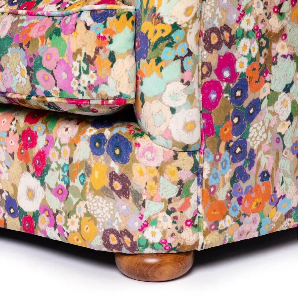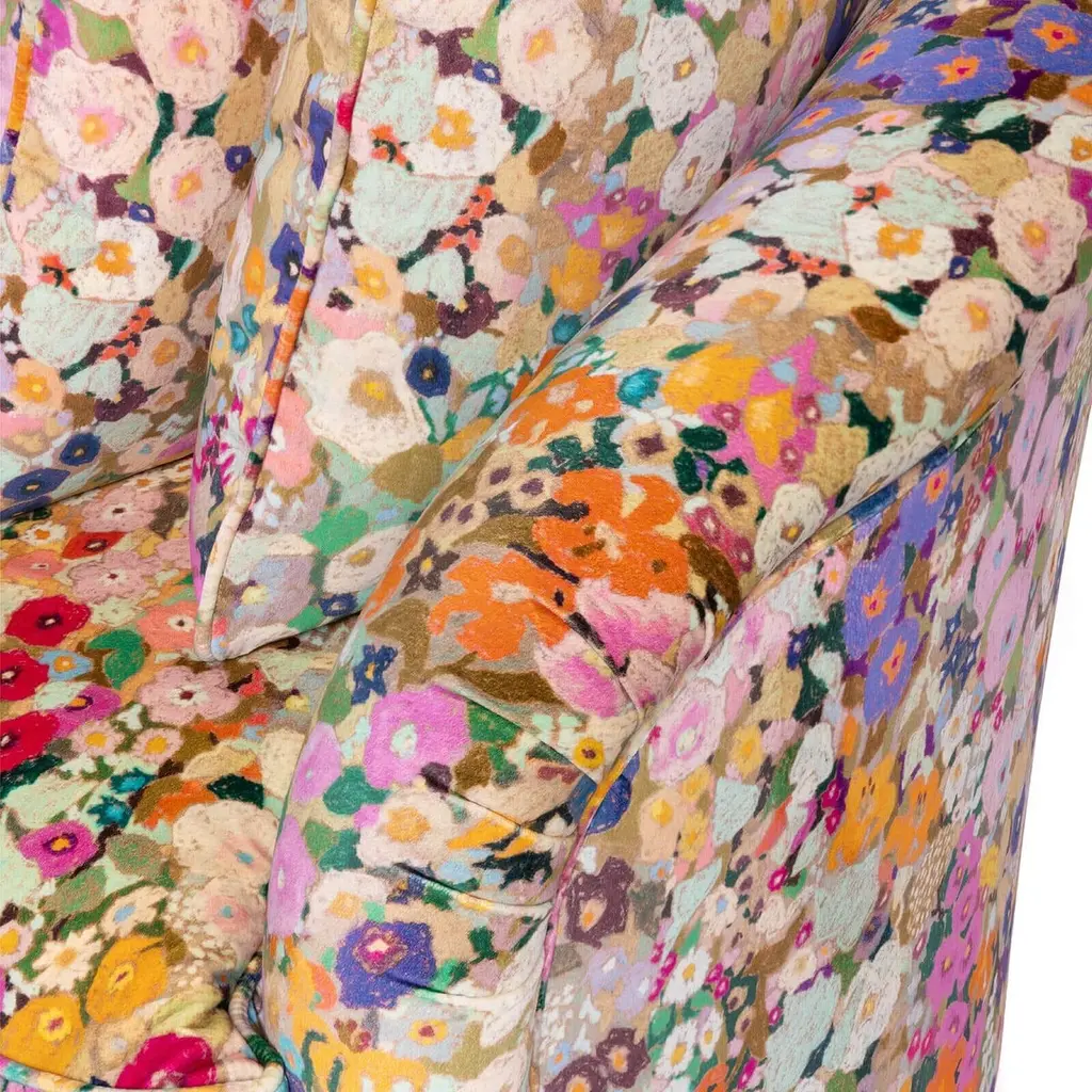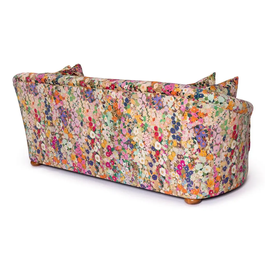 Rest amongst a meadow of wildflowers with the HOLLYHOCKS Vesper Sofa in sumptuous British-made cotton velvet.Named for the Latin evening star, the Vesper Loveseat is the perfect piece for curling up in when the sun goes down. This modernist beauty is hand-crafted in Britain by the country's finest furniture makers and features sloping arms and continuous curved backrest reminiscent of mid-century designs and comes complete with four matching scatter cushions.