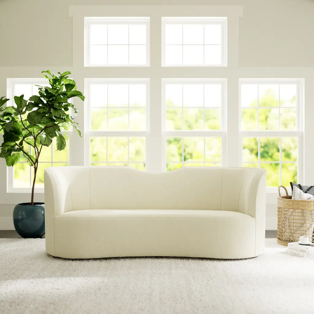 Contemporary and chic, the Hollywood Sofa is the perfect shape for dramatic lounging; perhaps even a Hollywood movie-worthy fainting spell. It's uniquely dipped back pairs with it's oval shape to create a piece that is a statement in any living space. Ships In 8-10 Weeks Tight back Tight seat As Shown Fabric: Rayburn Oatmeal If you choose to purchase COM, once you have placed your order a customer service rep will contact you regarding where to send your fabric. Please note that current lead time is 17-19 weeks once your fabric arrives at the factory, and if unused fabric is under 1.5 yards, it cannot be sent back to you.This product can be special ordered in additional fabrics, leathers, and cushion fillings. Click here to email us for for additional information about special ordering.This image is for illustrative purposes only. The colors shown are accurate within the constraints of lighting, photography, and the color accuracy of your screen.