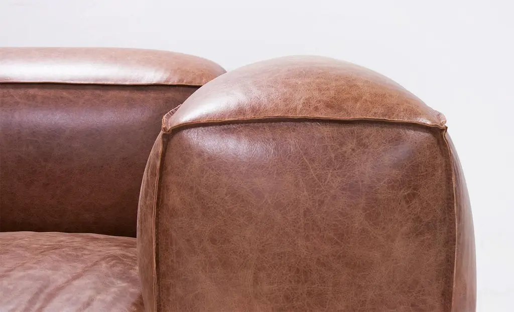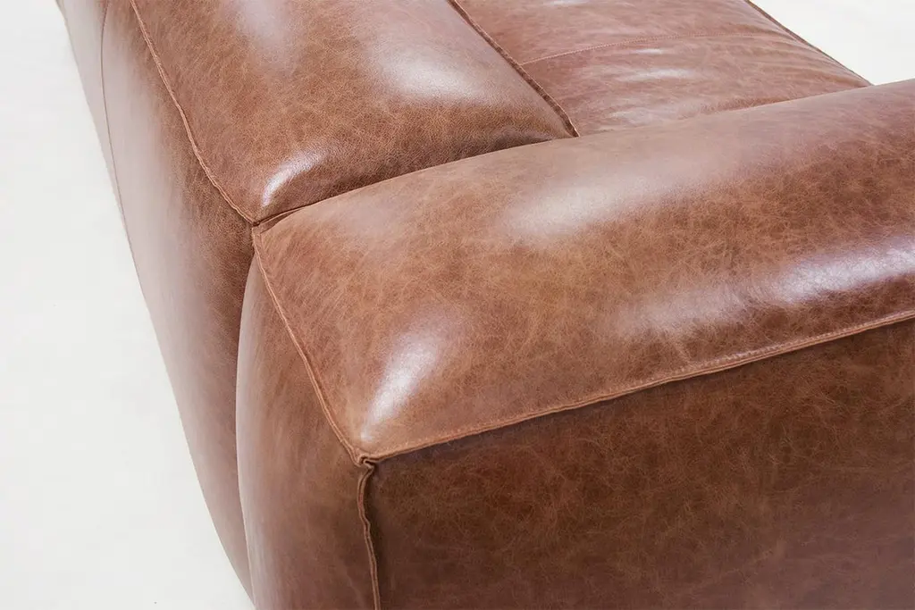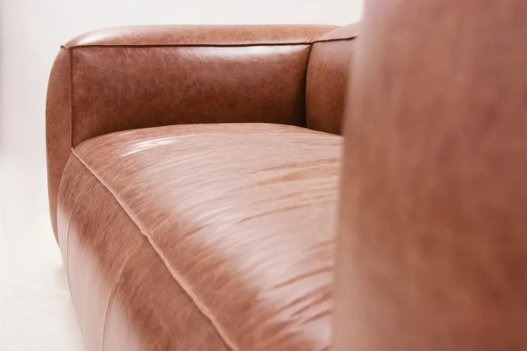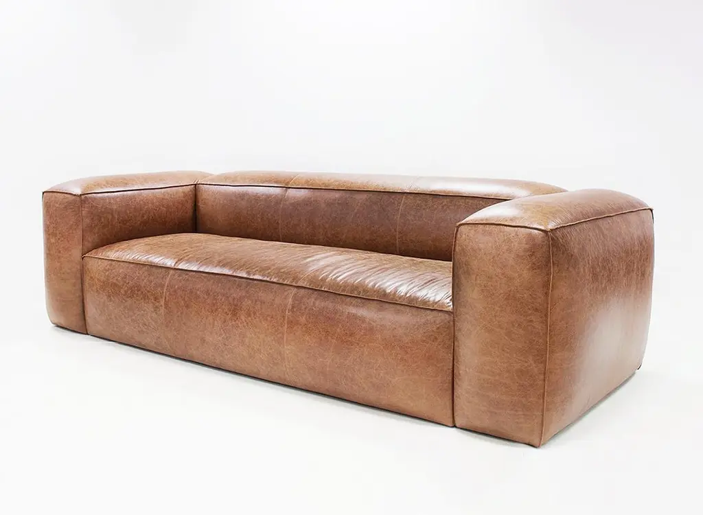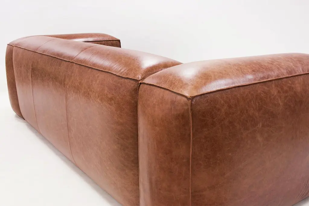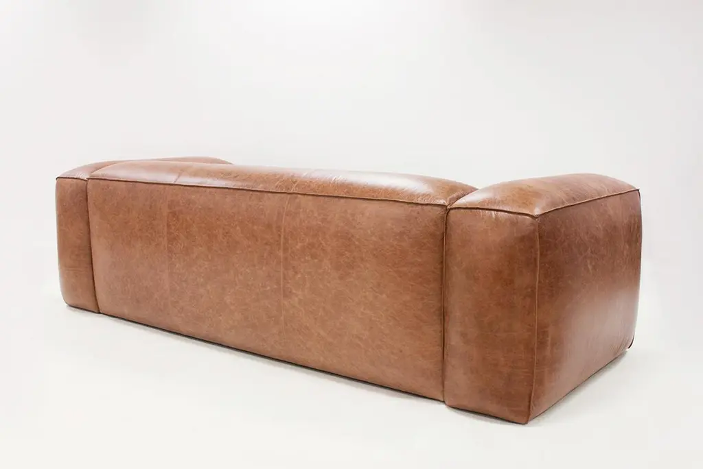Sofa homeboy with structure in solid wood,upholstered and covered with high qualitybrown genuine leather Cat A.
