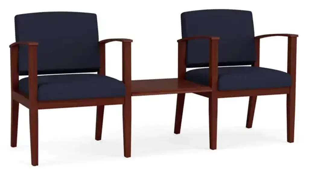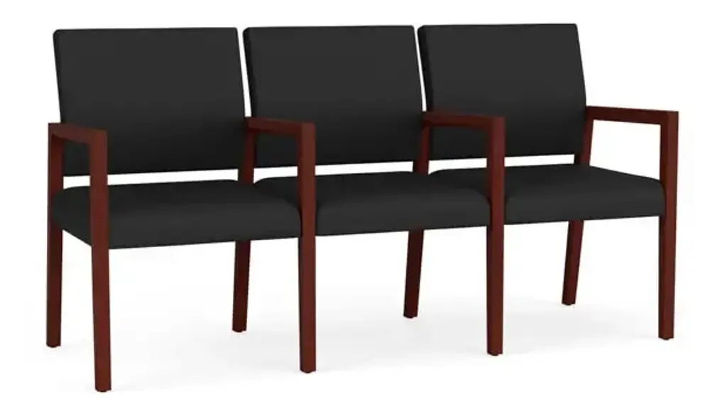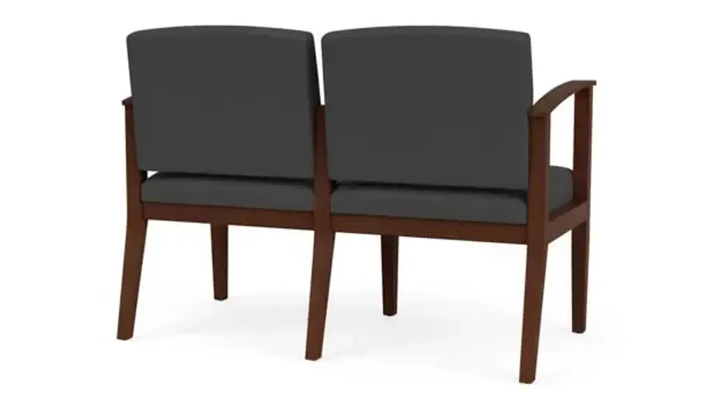 The Amherst Wood 2 seat sofa with its elegant yet uncomplicated styling, gently tapered arm design and Polyurethane upholstered cushions will give your space a light, graceful look. Features include sturdy hardwood construction, durable lacquer finish, and a comfortable Matrex seat support system. Optional urethane armpads available for comfort and protection. Durable lacquered finish cleans easily with a damp cloth. 300 lb weight capacity per seat. Overall Dimensions: 45.5" W x 23.5" D x 33" H. Easy to assemble with Lesro’s unique interlocking hardware. Ships ready for easy assembly.