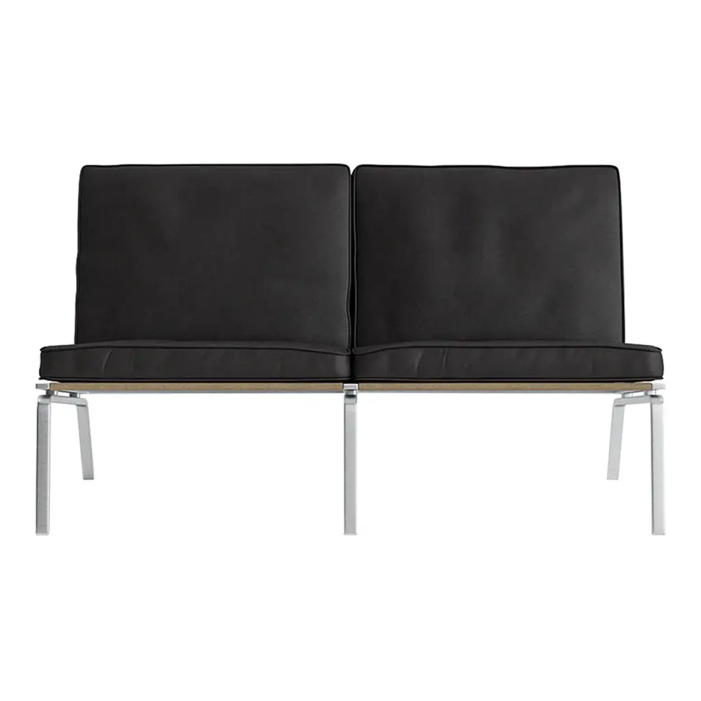 The Mystic 2 seat sofa with its refined, tapered back and striking geometric arm design will give your space a clean, contemporary look. Refined, tapered back and striking geometric arm design. Sturdy steel construction with durable powder coat finish in silver or black. Solid hardwood armrests with durable lacquer finish in Natural Maple or Riftwood Walnut. Matrex seat support system for long-life comfort. Several Polyurethane upholstery options. 300 lb weight capacity per seat. Overall Dimensions: 45.5" W x 25" D x 35" H. Ships ready for easy assembly.