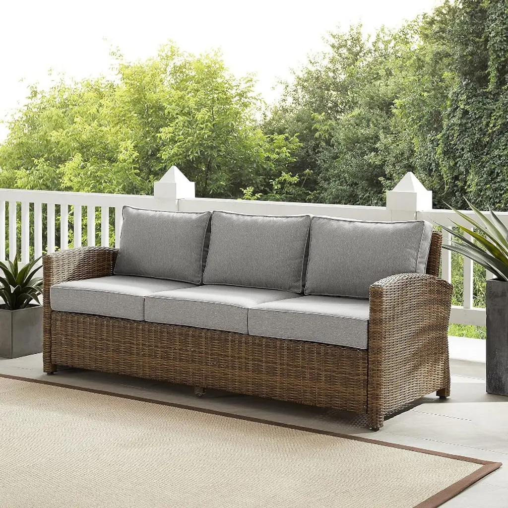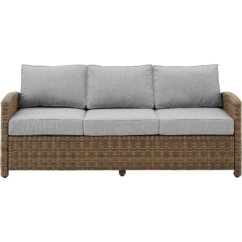 Whether you are lounging solo or entertaining a group, the Bradenton Outdoor Sofa fits the bill. The sturdy steel frame is wrapped in beautiful all-weather wicker and topped with moisture-resistant cushions. With gently arched arms and deep seating, the Bradenton Sofa is made for comfort without sacrificing style. Great on its own or paired with the rest of the Bradenton collection, this outdoor couch is a perfect addition to your backyard retreat.