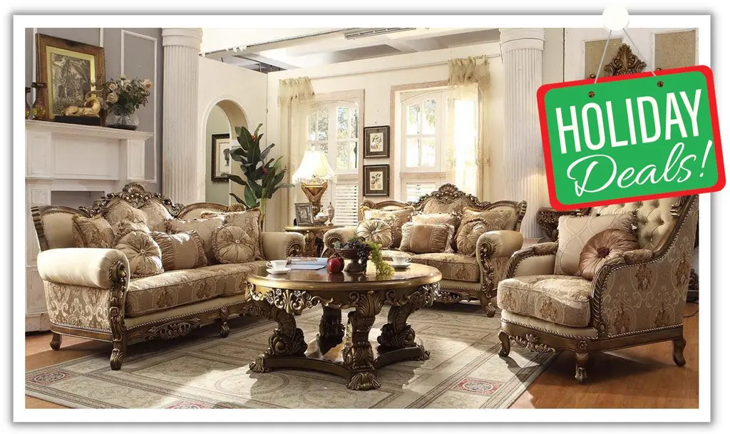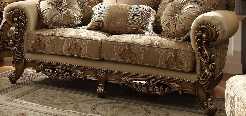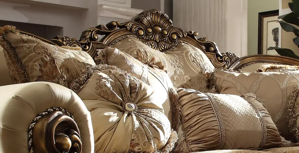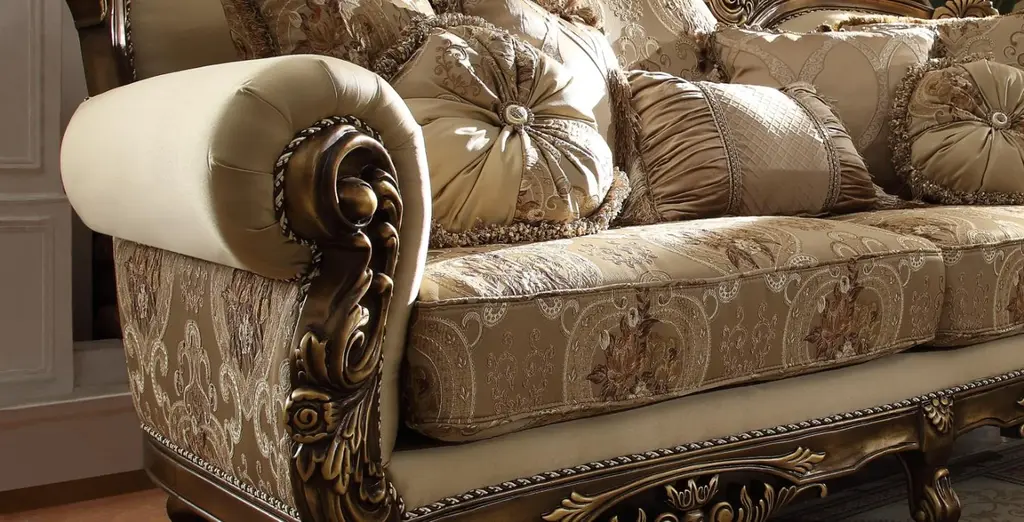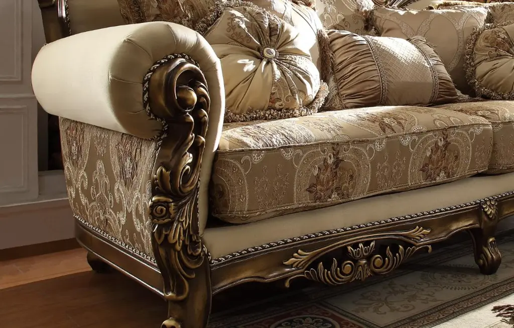 Introduces the brilliance of time-honored style merged with classic European. The refined elegance of old-world France is captured in this Living room set. This elegant sofa is sure to be a dazzling focal point in your traditional living room. Luxurious patterned accent pillows create a distinctive look, while the deep, plush seat cushion supports you in glamorous comfort and style. seat cushion and back are upholstered in a rich chenille fabric and accented with intricately hand carved solid wood, which continues along the front and up around the back for an exquisite style that is sure to impress. Scrolling, hand carved detail along the arms and base accent the grandiose traditional design of the sofa. Add this regal piece to your living room to create a warm and stylish space that everyone will admire. This Collection brings Yesterday's Tradition into Today's Lifestyle. With its tasteful art and fascinating design, the HD-506 is certainly one of Homey's best sellers. This set is infused in these delightful Earthly complexions and Chenille Fabrics with hues of Smokey Topaz, Restrained Gold and Townhall Tan.
