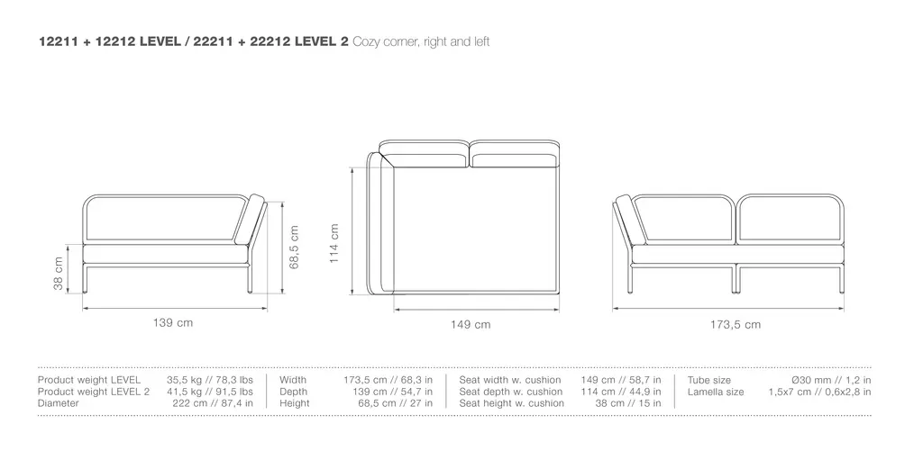 The LEVEL Right Facing Cozy Corner Sofa is the perfect addition to your outdoor living space. It is constructed of an aluminum frame and comfortable cushions.