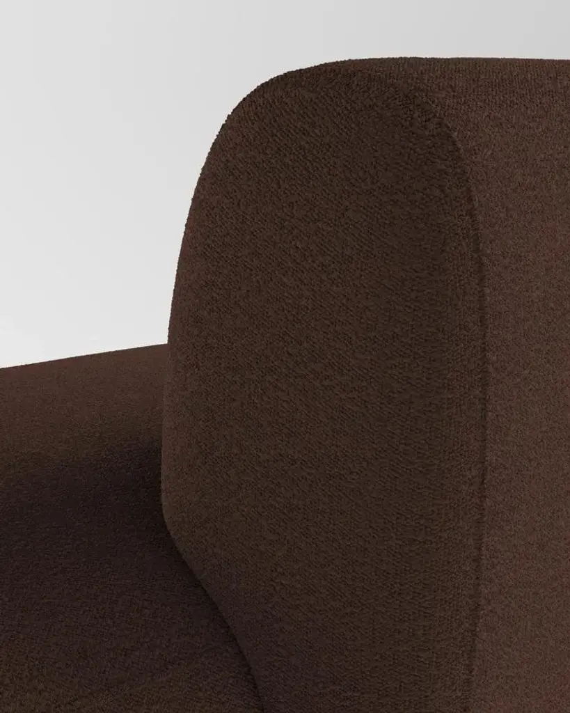 Hug sofa is defined by clean, simple lines and a distinctive armrest detail. The armrest, half overlapping the seat cushion, creates an interlocking detail between the two elements, while the padding, firm and welcoming at the same time, communicates comfort.