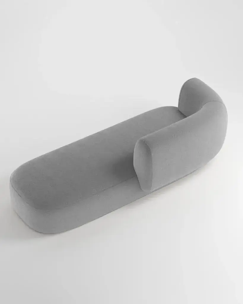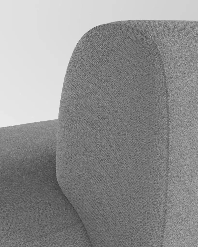 Hug sofa is defined by clean, simple lines and a distinctive armrest detail. The armrest, half overlapping the seat cushion, creates an interlocking detail between the two elements, while the padding, firm and welcoming at the same time, communicates comfort.