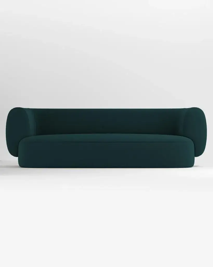 Hug sofa is defined by clean, simple lines and a distinctive armrest detail. The armrest, half overlapping the seat cushion, creates an interlocking detail between the two elements, while the padding, firm and welcoming at the same time, communicates comfort.