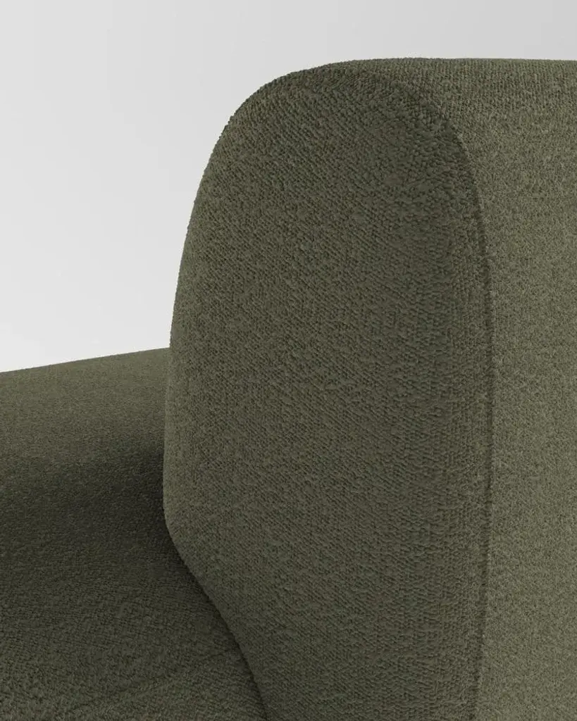 Hug sofa is defined by clean, simple lines and a distinctive armrest detail. The armrest, half overlapping the seat cushion, creates an interlocking detail between the two elements, while the padding, firm and welcoming at the same time, communicates comfort.