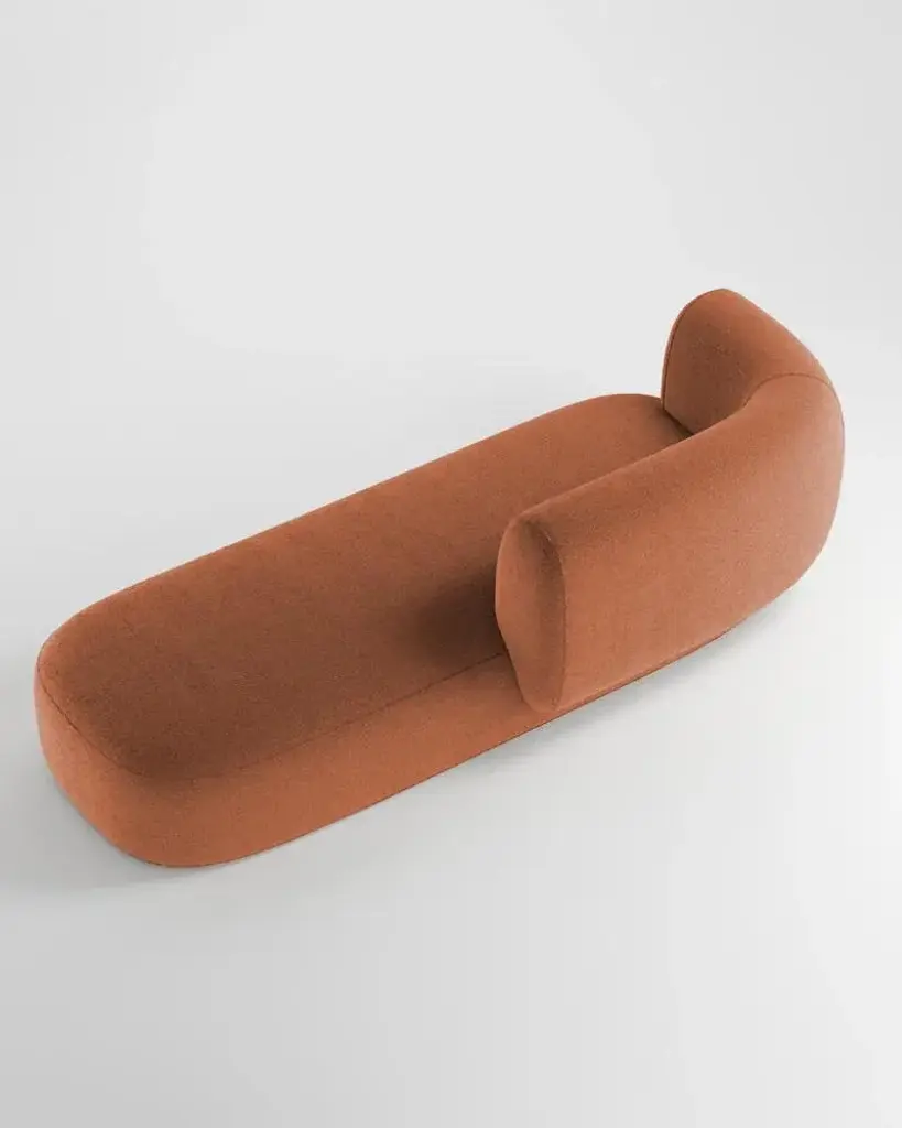 Hug sofa is defined by clean, simple lines and a distinctive armrest detail. The armrest, half overlapping the seat cushion, creates an interlocking detail between the two elements, while the padding, firm and welcoming at the same time, communicates comfort.