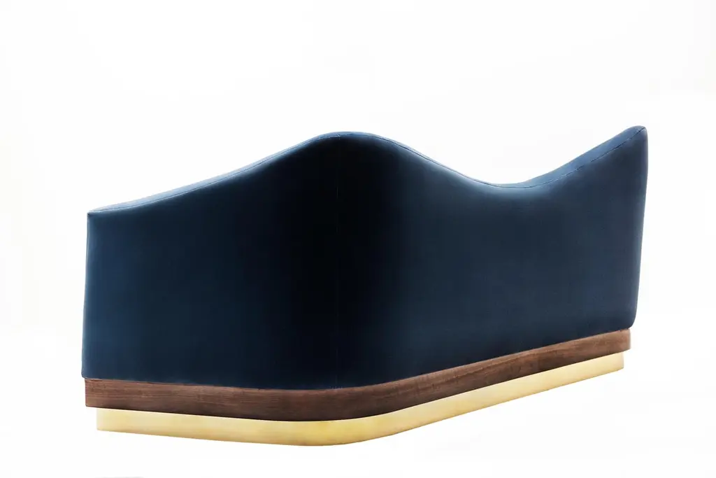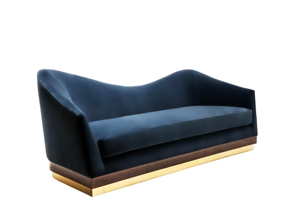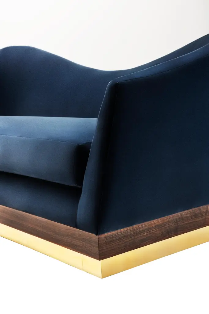 Hughes 240 Sofa by MunnaDimensions: D 95 x W 240 x H 95 cm. SH: 44 cm.Materials: Wood, foam, brass, and upholstery.Finish: Cotton Velvet, ref. Blue Grey, CV07 upholstery, gloss ebony wood veneer upper footer, and polished brass lower footer.Available in all Munna fabrics except Wild Silk. Available in client’s own material. Brass, Nickel or Copper in Polished or Brushed finishing; or in Rosewood, Ebony, Walnut, Wengé stain or lacquer in all RAL colours, in matt or gloss. Handmade in Porto. Please contact us.Established in Porto in 2008, Munna is a furniture design brand renowned for creating handmade upholstery with unmatched craftsmanship, seamlessly blending noble materials and timeless design, for both commercial and residential projects.Made by hand in Porto, Munna’s pieces honor the profound heritage of craftsmanship, while drawing inspiration from history’s most influential artistic periods. Munna’s pieces are made of the finest fabrics such as cotton velvet, twill, leather, and silk; the finest wood veneers, such as ebony, walnut, and rosewood; sumptuous gold, silver, and copper leaves, metal details in brass, nickel, and copper, and superior lacquers.