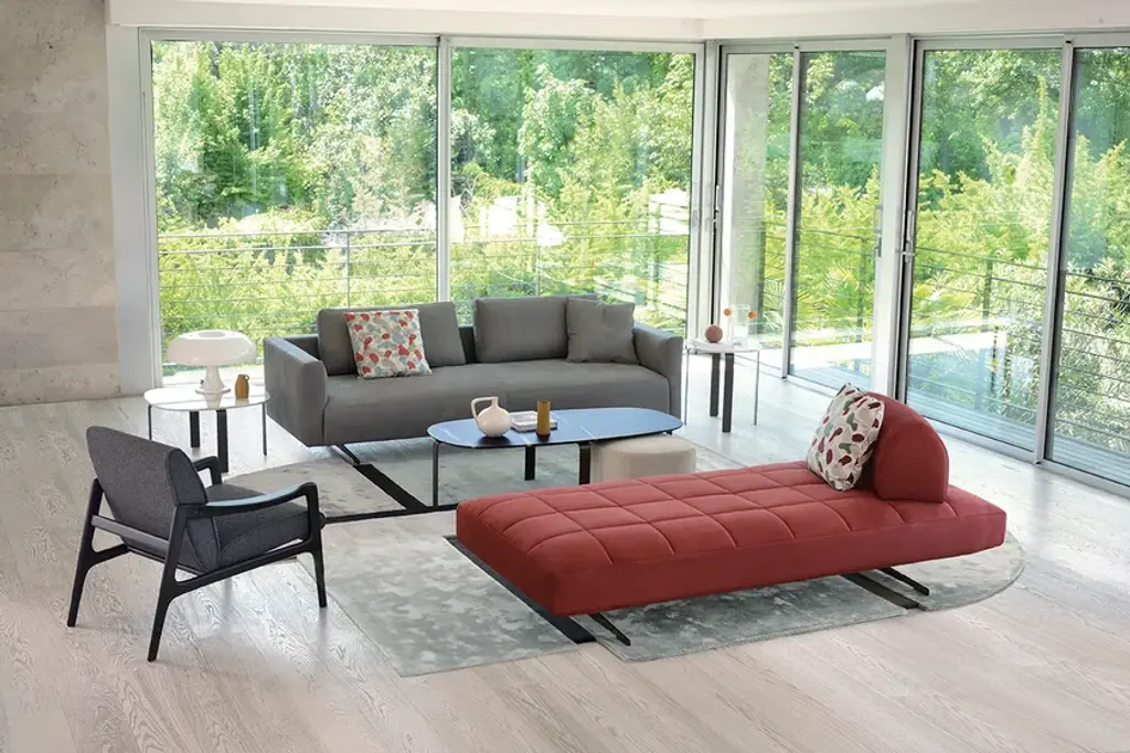 Ikon is a sofa made of fabric, available in different shapes.Ikon, designed by Marconato & Zappa, is an upholstered system characterised by an eclectic, seductive, refined style with a strong aesthetic impact.What characterises Ikon is comfort, a key feature of the CTS handcrafted sofas. This is guaranteed by double density polyurethane padding whose flexibility is also due to the woven elastic support straps. To further increase the softness, we offer the option of inserting a sterilised goose down cushion into the seat.The Ikon modular sofa is built to last over time thanks to the supporting structure made of solid fir and plywood as well as the removable covers (in the case of fabric upholstery). It is possible to completely renew the sofa after 5-10 years of use, incurring a limited expense for replacement of the covers with new fabric that conforms to current trends. The support base is in painted steel available in a choice of colours from the catalogue.The sofa can be customised in size to ensure optimum adaptation to the needs of any customer. It is also possible to provide an additional profile for the structure (backrest and armrest) in the colours indicated in the price list.
