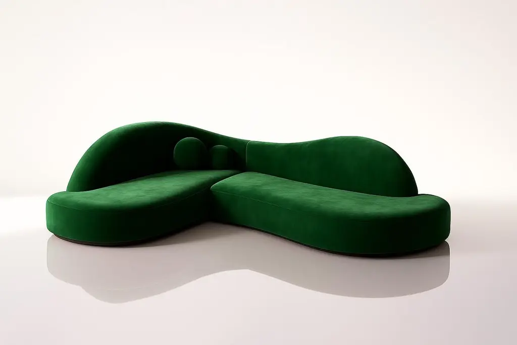 Illusion 90 Degree Corner Sofa With Curved Silhouette In Black Forest Velvet
