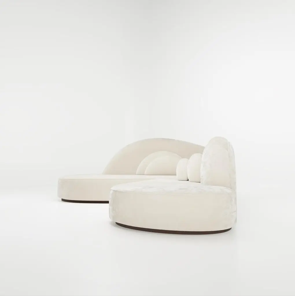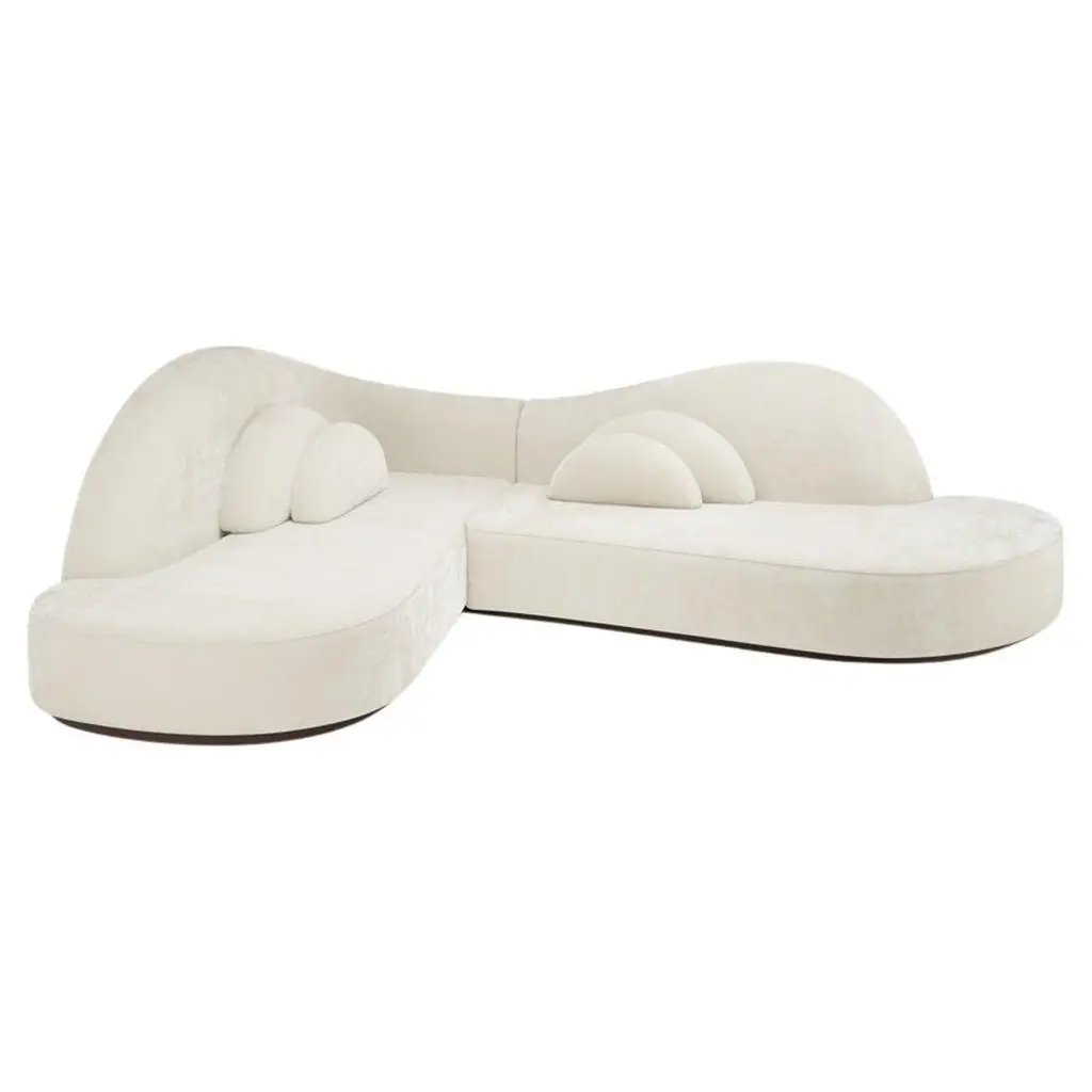 This sofa distinguishes itself with its curved silhouette and organic back design, creating the illusion of seamlessly fitting into a 90-degree corner and making any room feel cozy. Its timeless design, featuring a contemporary silhouette with soft lines and balanced proportions, exudes sophistication and charm. Upholstered in high-quality fabrics or leathers, the sofa offers a variety of textures and colors to match different decor preferences, with COM available upon request. Customers can personalize the sofa by choosing from a wide selection of upholstery options, including different fabrics, leathers, and wood colors, ensuring it fits specific aesthetic and functional needs. Solid wood frame, upholstery cushions filled with high-density foam ensure comfort, while meticulous craftsmanship and handcrafted details guarantee durability and superior quality. This combination of comfort, style, and quality makes the sofa a standout piece for any interior style, providing both support and softness for an exceptional seating experience.The listed price does not include any pillows shown in the photos.We will be glad to check with the factory’s technical team if sizes, finishes, and colors can be customized.We do our best to expedite production and to ship and deliver product within the listed lead time, however current lead times might be longer due to global shipping backlog and delays. These delays are out of our control and cannot be a reason to cancel an order.