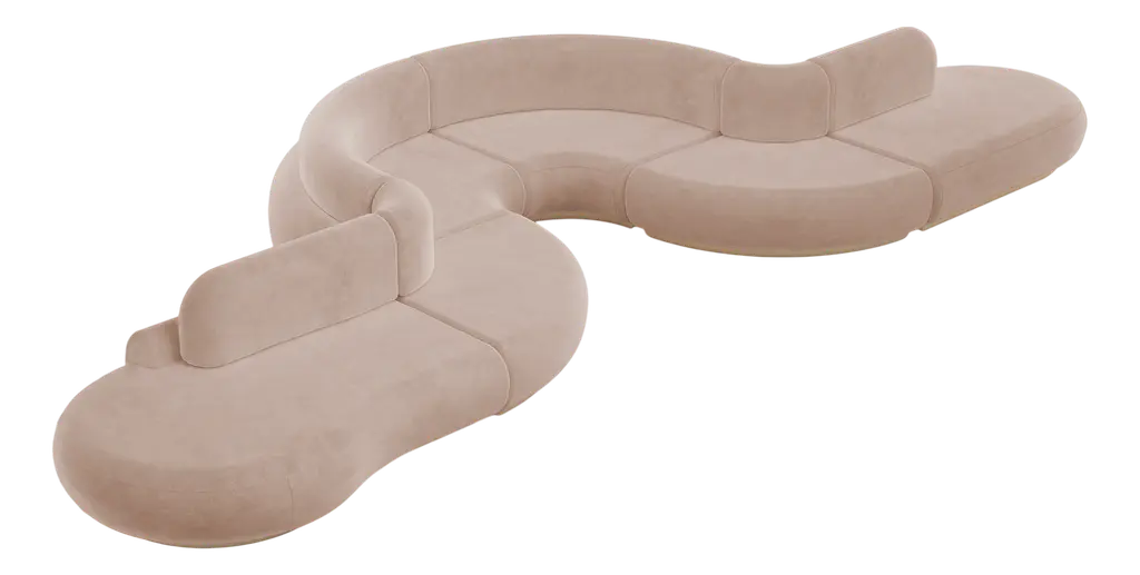 Illusion Curved Corner Sofa In Soft Alpaca Velvet