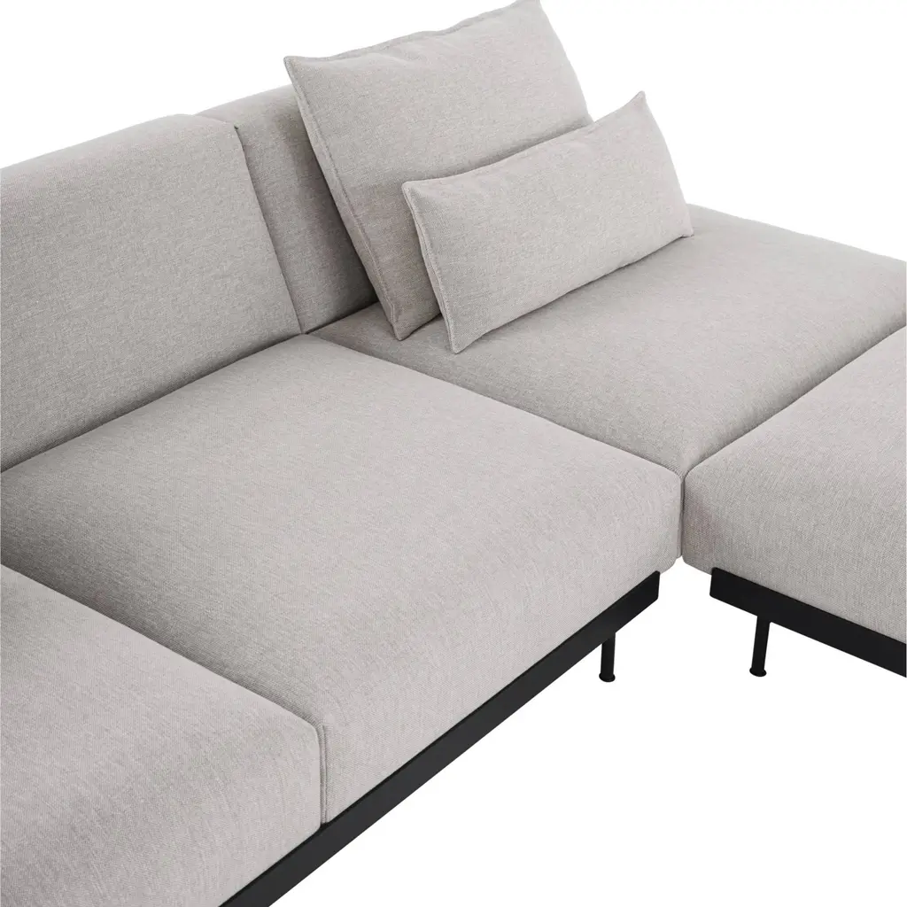 With In Situ, designers Anderssen & Voll say they meld "the grandeur of traditional Italian sofas with the refined simplicity of Scandinavian design." Working with Copenhagen brand Muuto, the Norwegian studio arrived at a distinctive modular scheme, with 30 prearranged configurations based on the 9 different seating styles and 2 loose cushions. A powder-coated steel frame runs along the seat and back of the sofa and visually unifies the separate units. In Situ's crisp profile and deeply comfortable proportions are realized with wood construction and foam, wadding and fiberball fill.