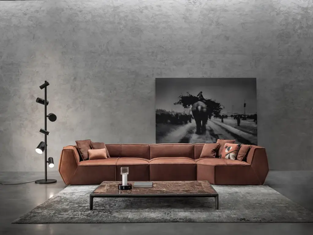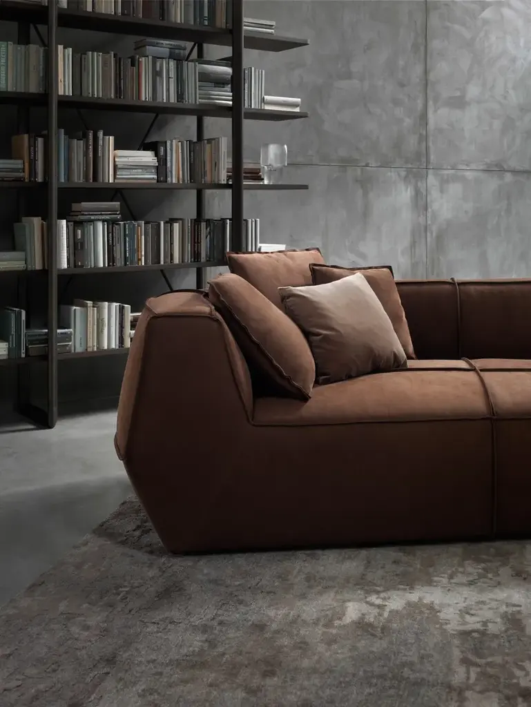 Infinito is a natural leather sofa that offers endless seating compositions; and infinite in freedom of expression. This sofa, with only 3 elements, allows for a wide range of seating compositions, each with different depths.Technical featuresStructure: Base in plywood panel and polyurethane rubber of different densities.Cushions: Perimetral cushions in high grammage on wood structure. Seat cushions in polyurethane rubber of different densities. Seat cushions covered with a quilted goose down in cotton light.Covers: All products from Infinito family are covered by leather and are not removable.
