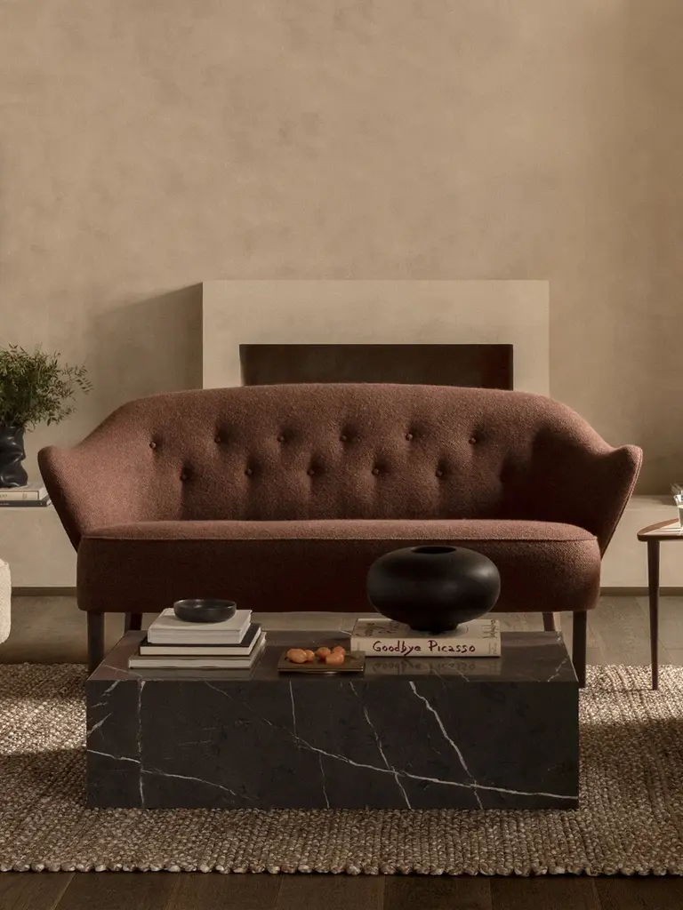 The beautiful and expressive lounge sofa was originally designed in 1940 by architect Flemming Lassen. Ingeborg Sofa is based on the same design expression as the recently launched lounge chair Ingeborg, and together the two now form a matching duo. The elegant, curvy armrests add character to the design and give the impression of a warm embrace.