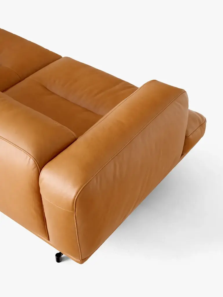 Torbjørn Anderssen and Espen Voll wanted to design a sofa that would provide the utmost comfort within a clearly defined architectural framework. With this vision in mind, they designed Inland, a low-form, deep sofa with high arms and a warm black steel-footed base that gives it the sense of floating.MaterialWood, steel base, HR foam, polyester wadding, fabric or leather upholstery.Production ProcessThe frame is made from solid beech and plywood and subsequently covered in HR foam, duvets, and polyester wadding. The metal legs are milled and welded and afterwards powder-coated.UpholsteryAvailable in a variety of fabrics.ManufacturerProduced in Poland by Trioline