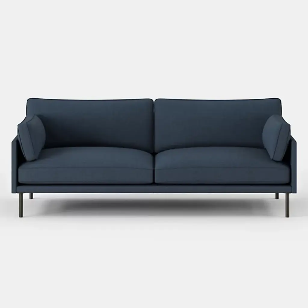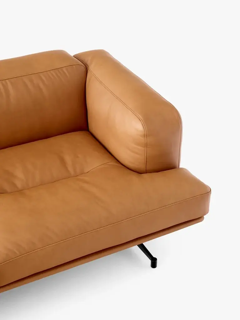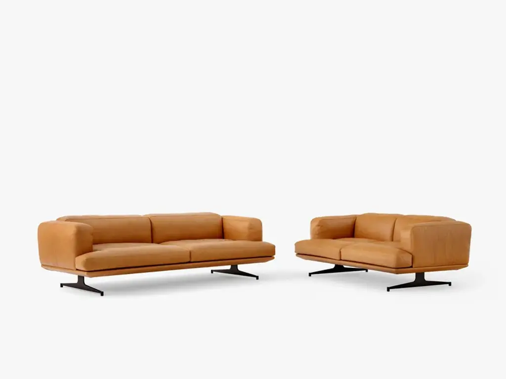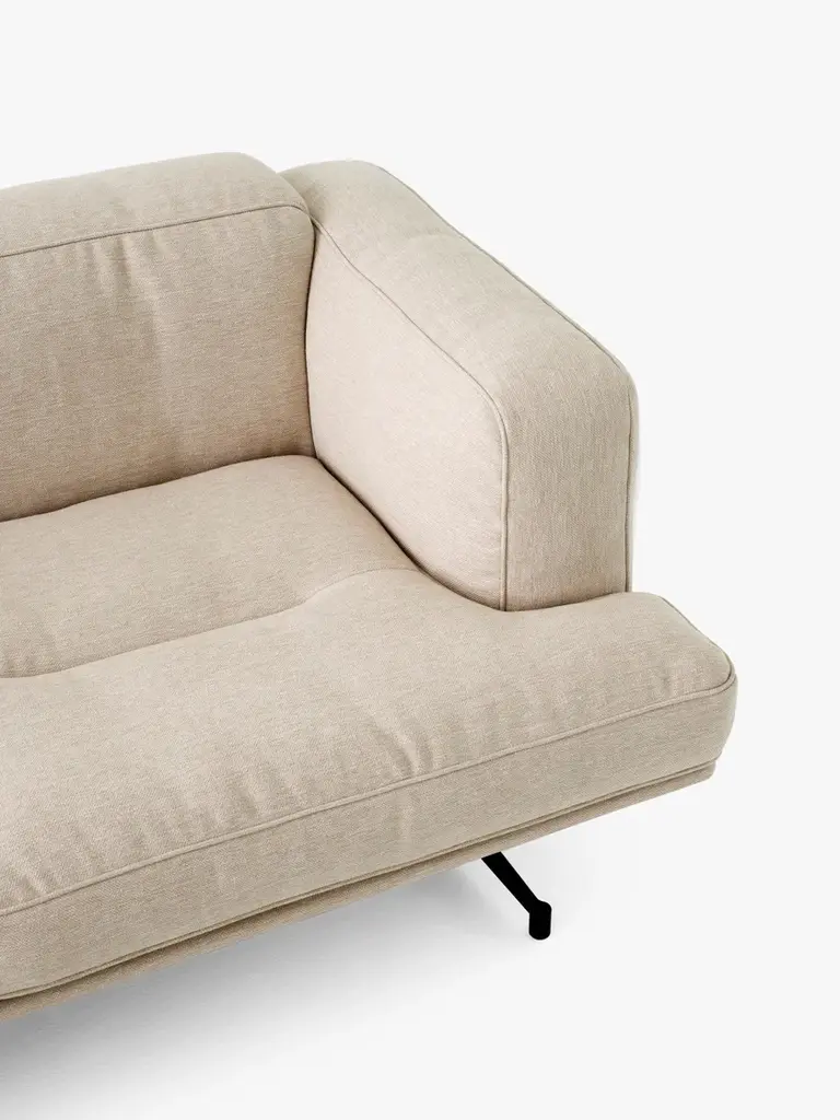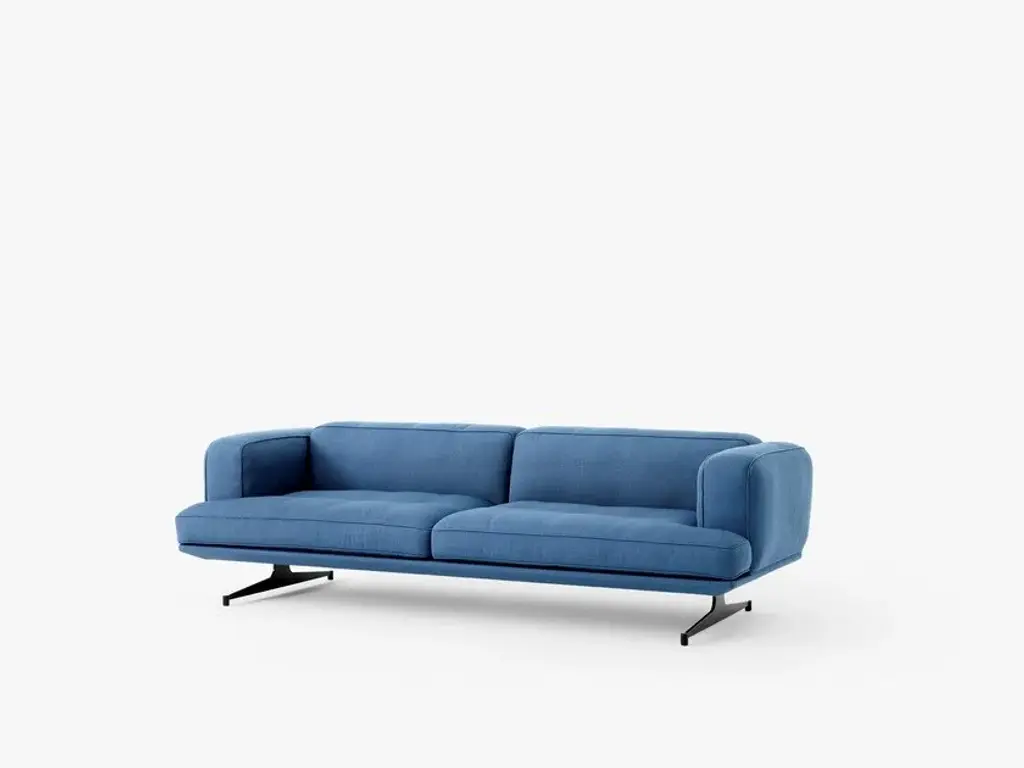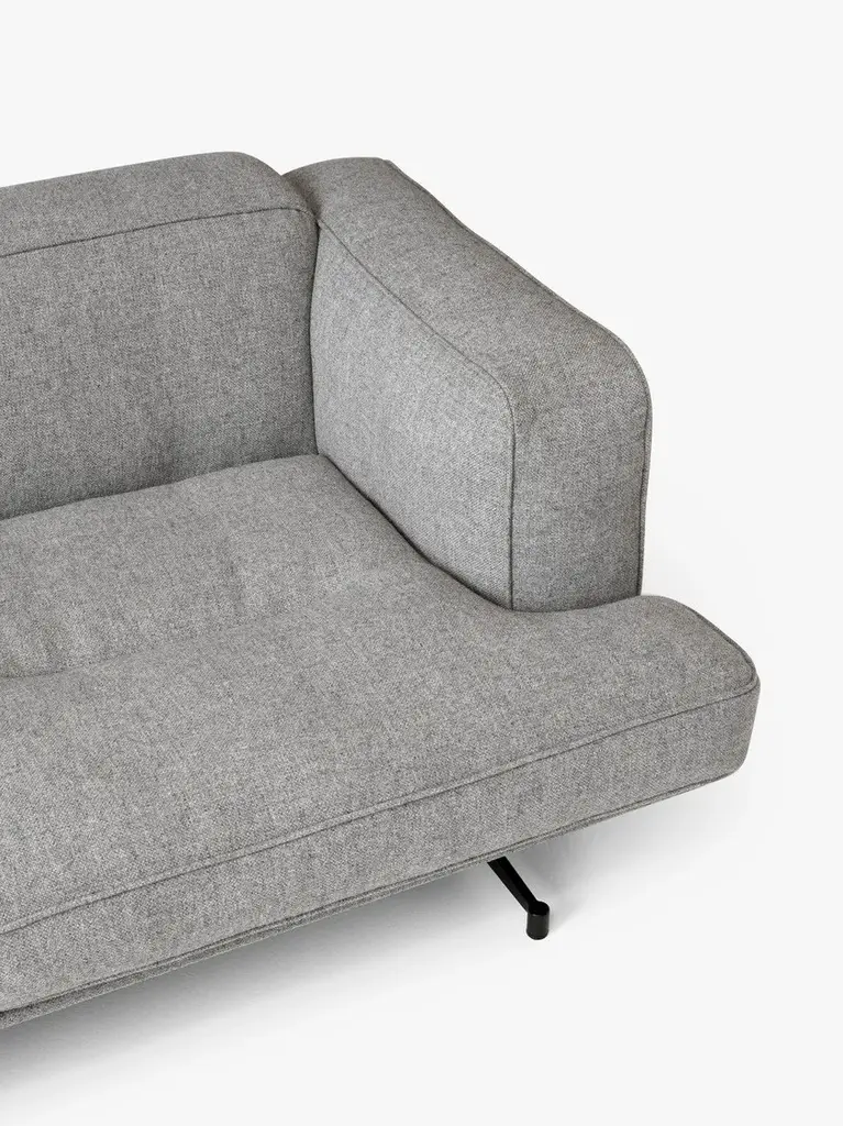 Torbjørn Anderssen and Espen Voll wanted to design a sofa that would provide the utmost comfort within a clearly defined architectural framework. With this vision in mind, they designed Inland, a low-form, deep sofa with high arms and a warm black steel-footed base that gives it the sense of floating.MaterialWood, steel base, HR foam, polyester wadding, fabric or leather upholsteryProduction ProcessThe frame is made from solid beech and plywood and subsequently covered in HR foam, duvets, and polyester wadding. The metal legs are milled and welded and afterwards powder-coated.UpholsteryAvailable in a variety of fabrics.ManufacturerProduced in Poland by Trioline