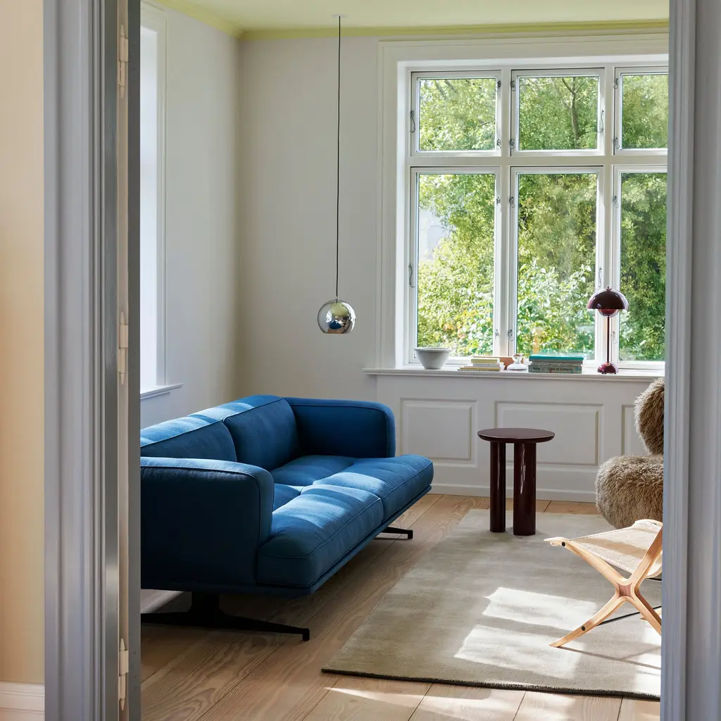 Available as a 2- or 3-seater, designers Torbjørn Anderssen and Espen Vol's indulgent sofa delicately toggles between the minimalist rigor of their native Norway and Italian-inspired flair. Inland's low stance and plush cushioning enclosed by high arms gives it a sense of floating on its receding black support. “With the delicate steel leg base, the floor opens up and runs unhindered," says Voll, with "comfort hovering above." And upholstery materials from classic leather to warm wool suit any interior.