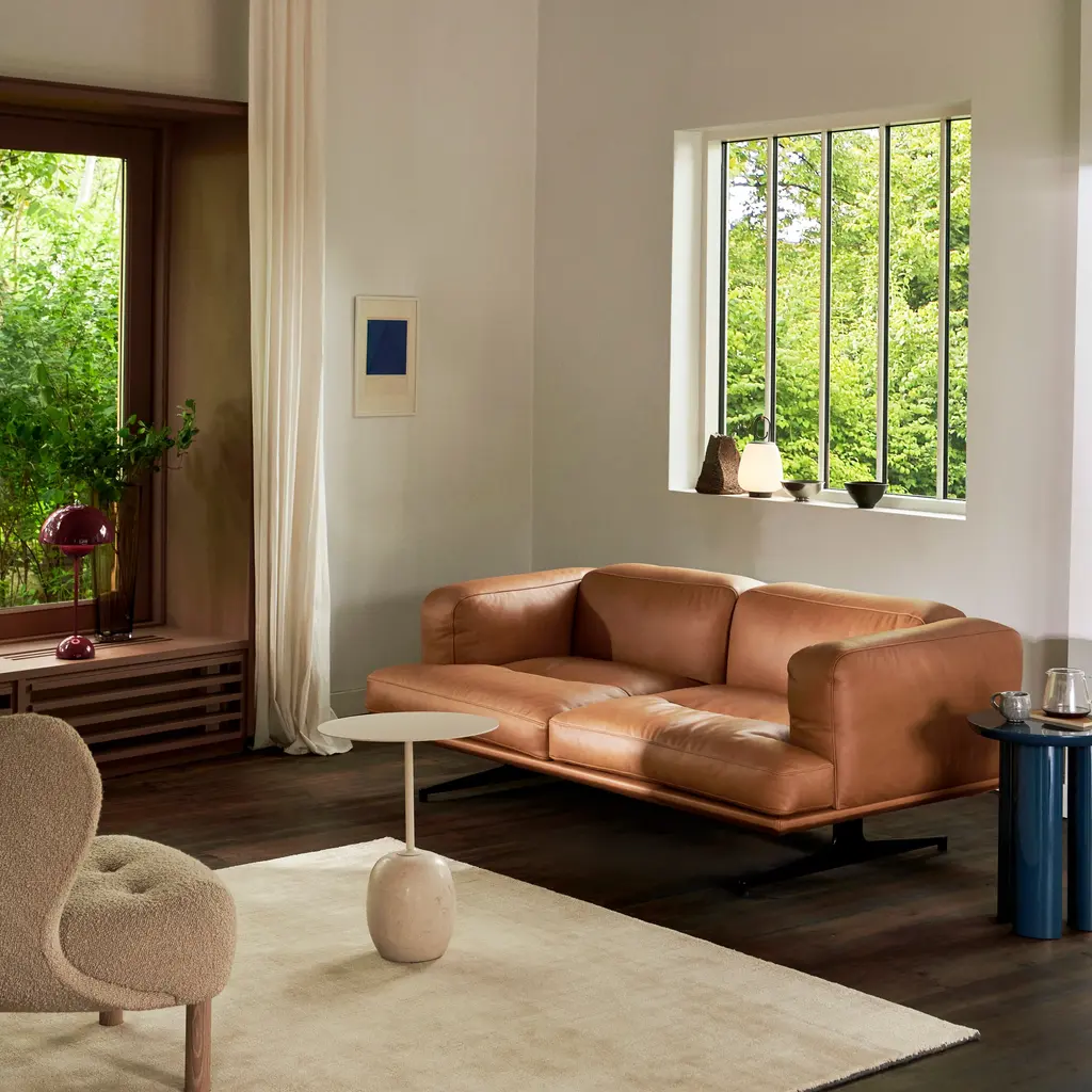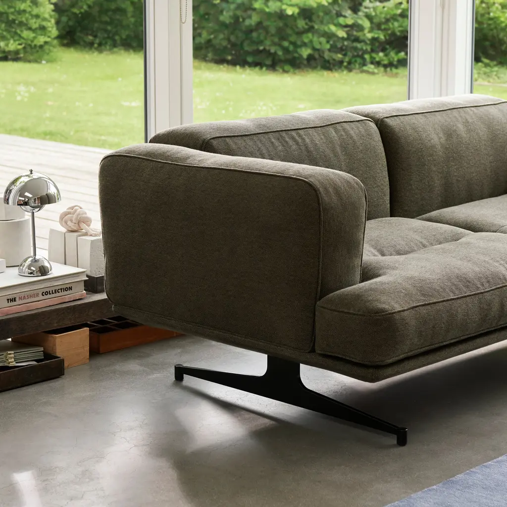 Available as a 2- or 3-seater, designers Torbjørn Anderssen and Espen Vol's indulgent sofa delicately toggles between the minimalist rigor of their native Norway and Italian-inspired flair. Inland's low stance and plush cushioning enclosed by high arms gives it a sense of floating on its receding black support. “With the delicate steel leg base, the floor opens up and runs unhindered," says Voll, with "comfort hovering above." And upholstery materials from classic leather to warm wool suit any interior.