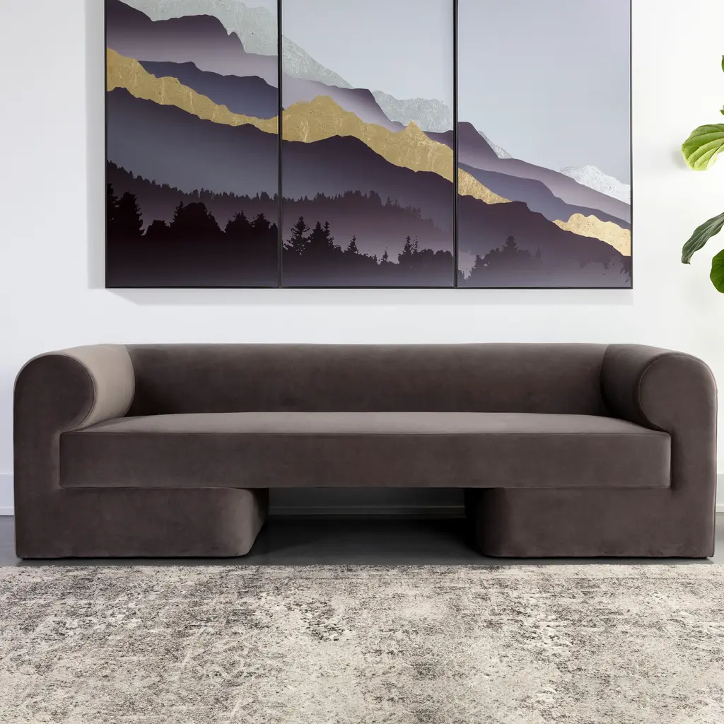 Indulge in luxurious comfort and style with the Ionic Sofa from Sunpan. Its bold and contemporary design features rounded back and arm rests, crafted for ultimate comfort. The fully upholstered meg ash fabric exudes elegance and sophistication. Complete the look with the coordinating armchair for a truly exclusive living space. Highlights
