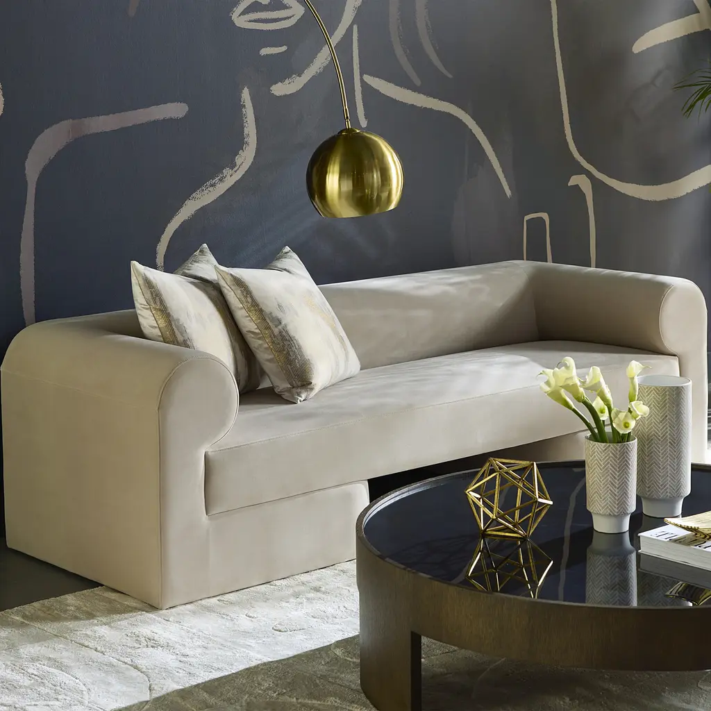 Indulge in luxurious comfort and style with the Ionic Sofa from Sunpan. Its bold and contemporary design features rounded back and arm rests, crafted for ultimate comfort. The fully upholstered meg ash fabric exudes elegance and sophistication. Complete the look with the coordinating armchair for a truly exclusive living space. Highlights