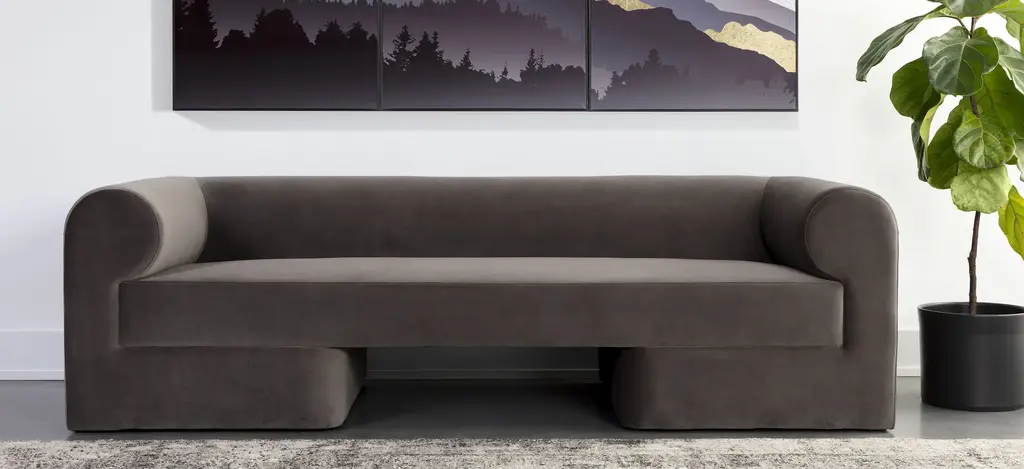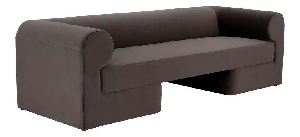 A bold take on contemporary style, this Ionic Sofa will stand out in any space. Features rounded back and arm rests for ultimate comfort. Fully upholstered in luxurious fabric.