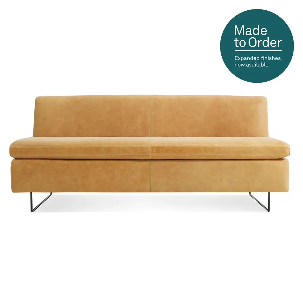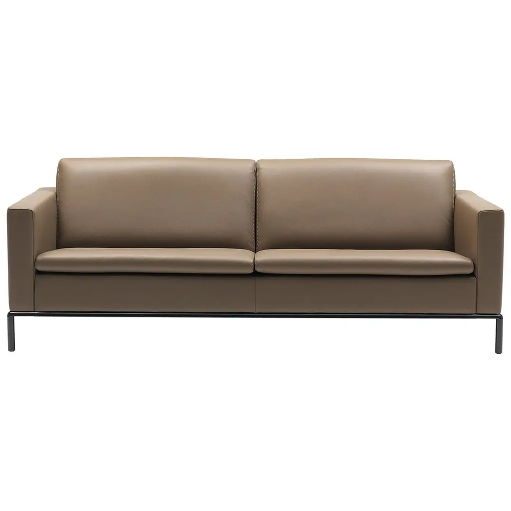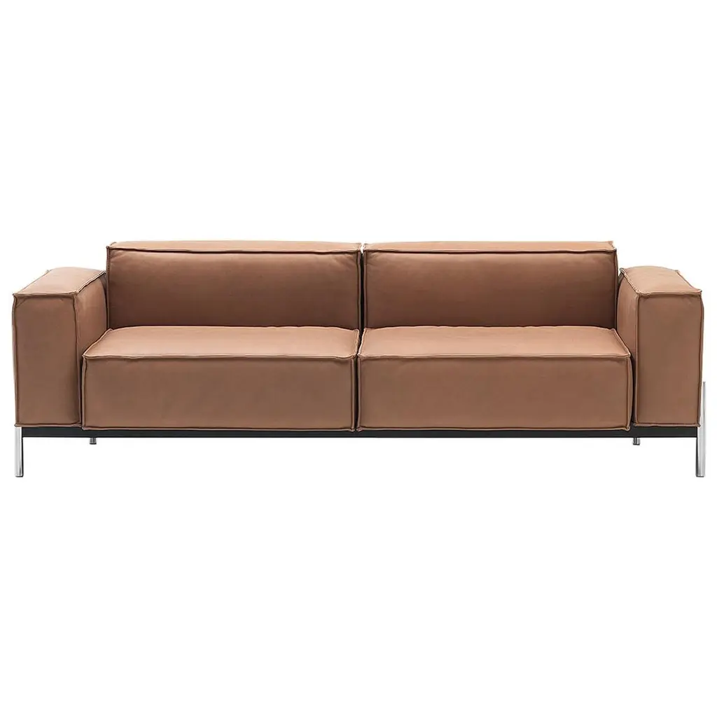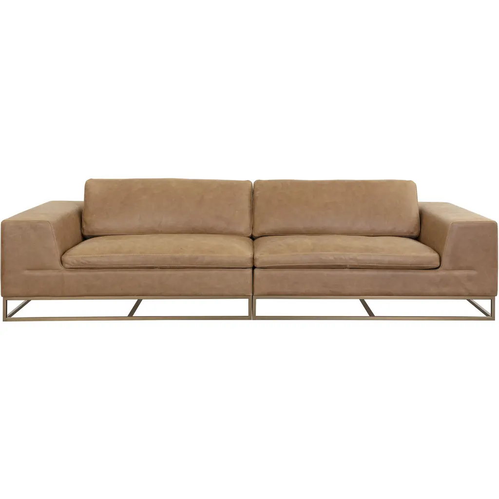 Boasting a modern design, the Ira Sofa features simplified lines and a contemporary silhouette. Upholstered in our camel Italian leather, this sofa exudes luxurious comfort. Finished with a gold metal base. Handle with Care: This design has been crafted with top grain leather. Leather is a natural material as such, colour variations, markings, wrinkles, grooves and light scratches are acceptable and appreciated characteristics. No two pieces are alike. Visit our Product Care page for more information on how to ensure the lasting beauty of this piece.