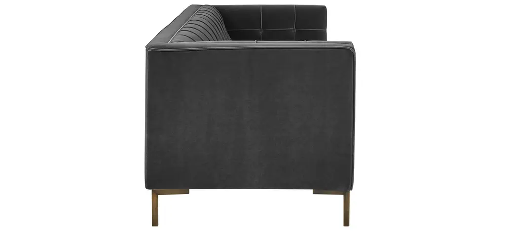 Isaac collection combines sleek lines and sumptuous finishes to create the ultimate opulent effect. The styling for these silohuettes follow a classic mid century modern design but are updated with features such as brass, angular legs and rich velvet fabric. The channel stitching in a vertical and horizontal pattern is an elegant design detail that is sure to draw the eye and attention of onlookers. As engaging as the style itself is, Isaac is also built for everyday family life. The fabric is treated to to help guard against sticky fingers and muddy paws.