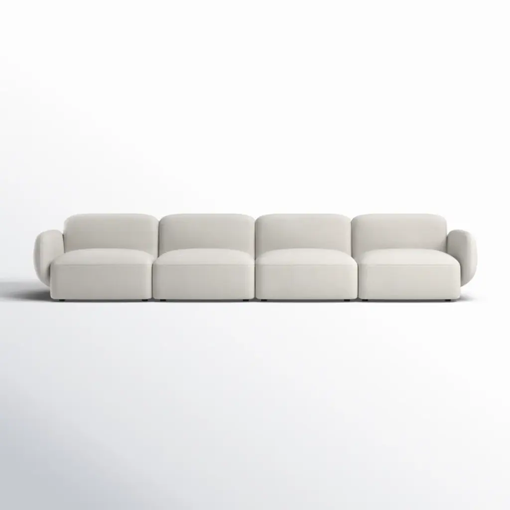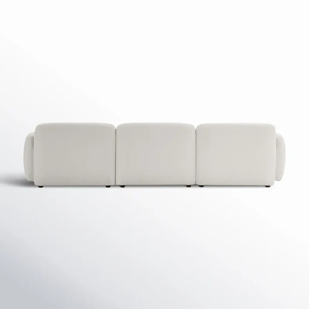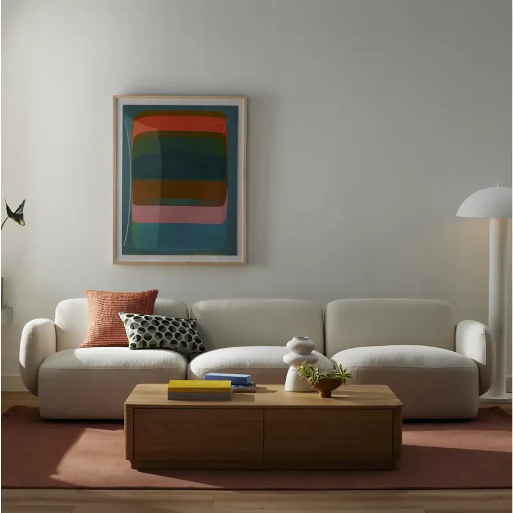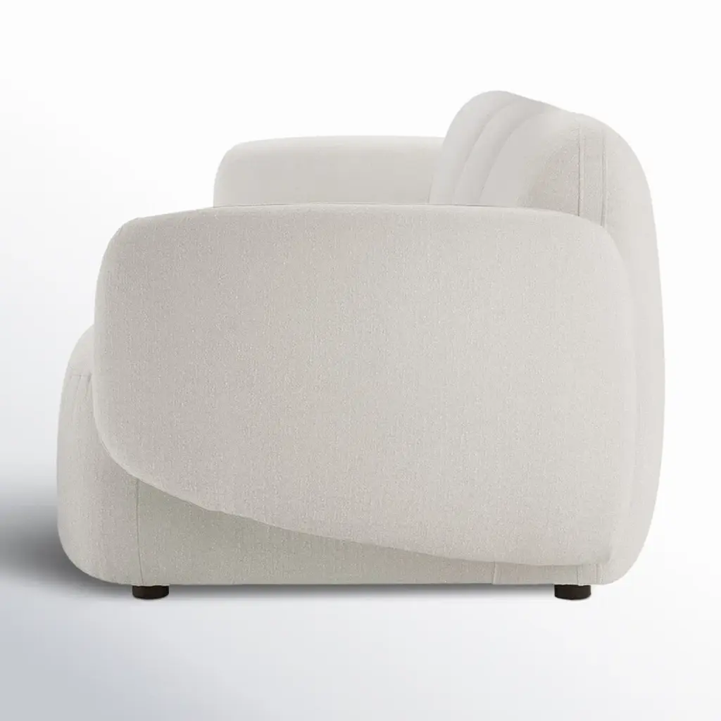 Fun + striking, this sofa showcases an artful silhouette defined by simple, rounded lines and plush proportions. Its low profile + deep seat anchor your living room with an inviting modern vibe. Dense cushioning offers a supportive spot to lounge, while neutral upholstery keeps the look clean + highlights the sofa’s shapely form.