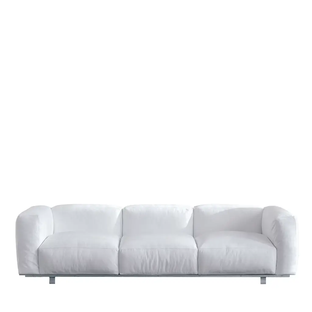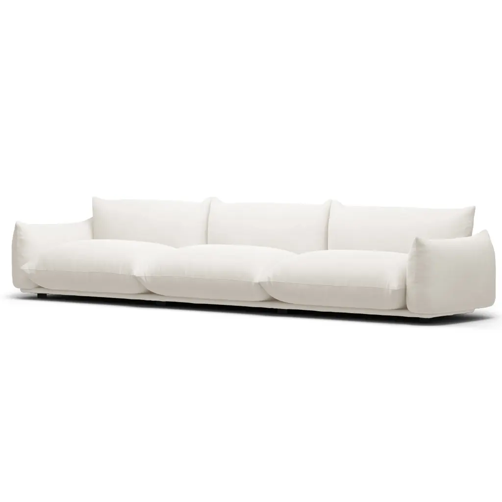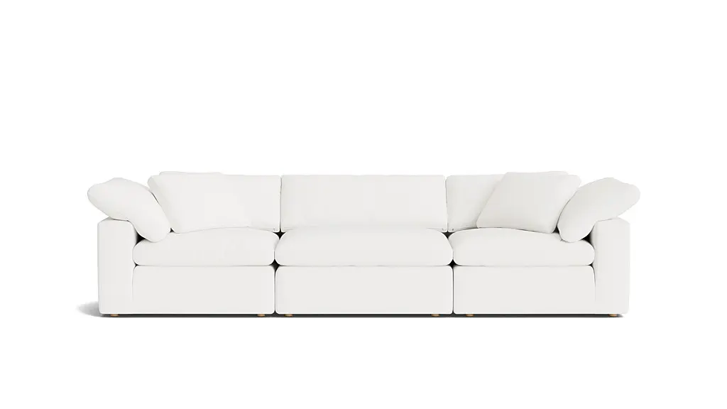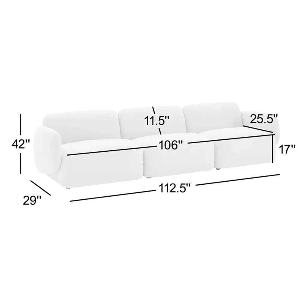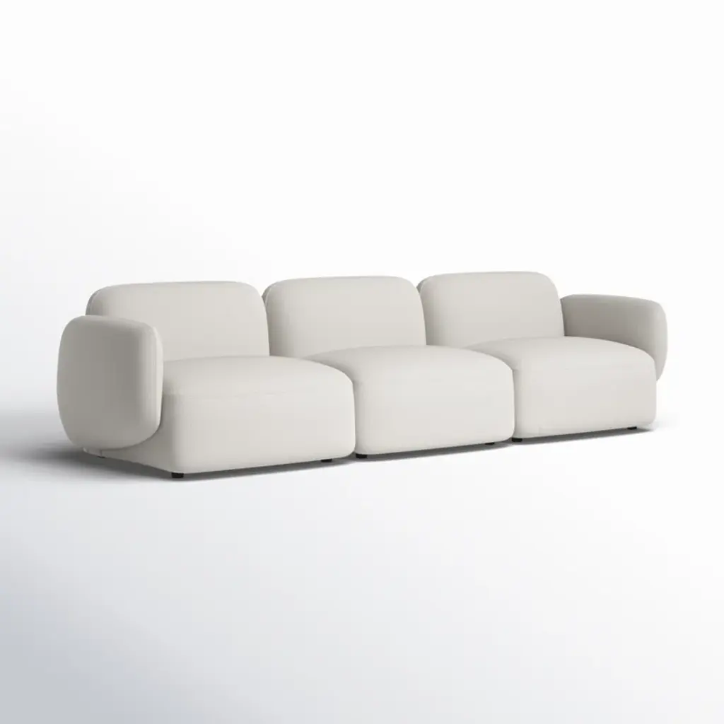 Fun + striking, this sofa showcases an artful silhouette defined by simple, rounded lines and plush proportions. Its low profile + deep seat anchor your living room with an inviting modern vibe. Dense cushioning offers a supportive spot to lounge, while neutral upholstery keeps the look clean + highlights the sofa’s shapely form.