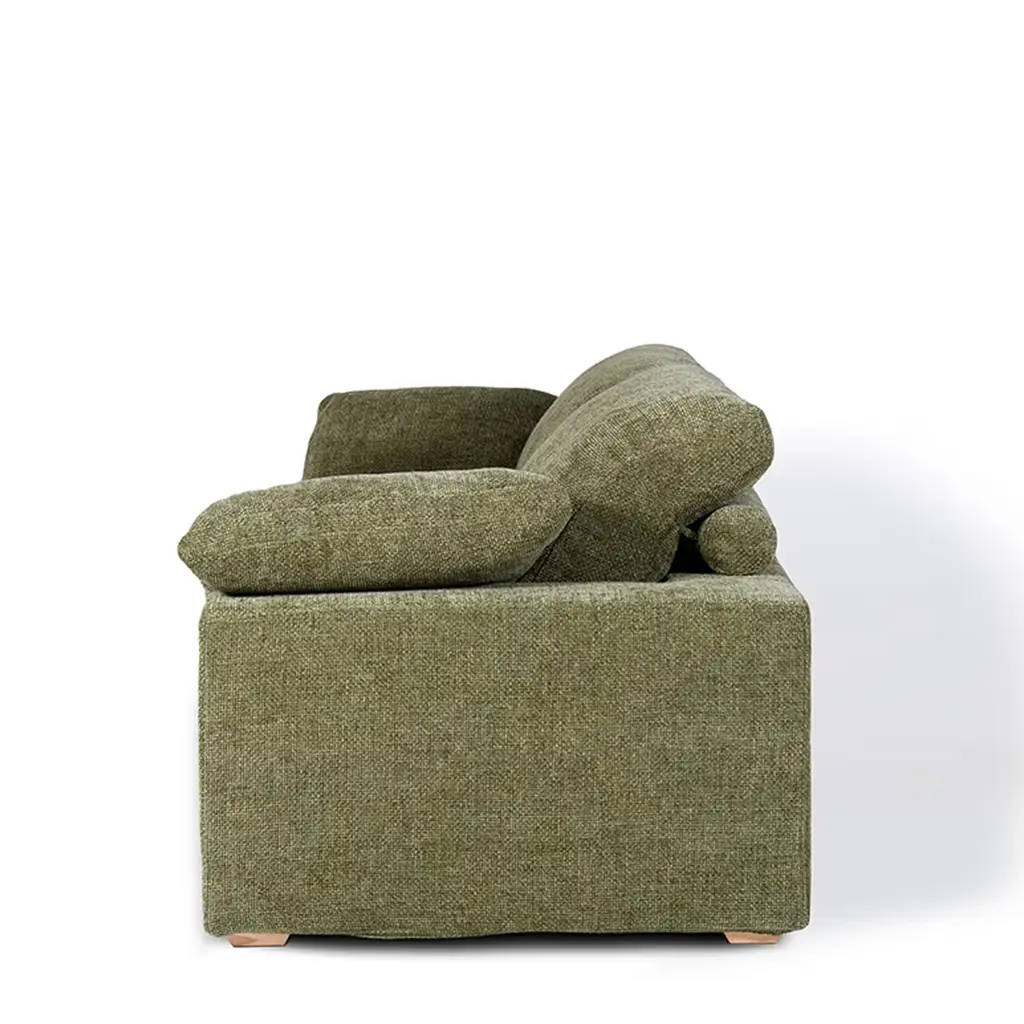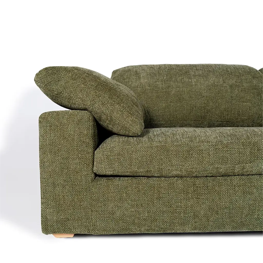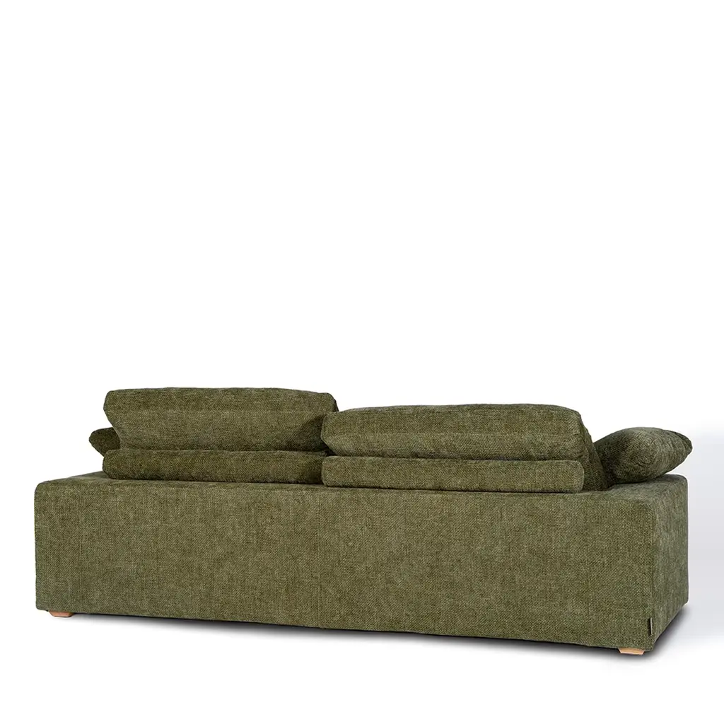 Italo, a modern and versatile sofa that blends comfort and style. Its sleek design suits both contemporary and classic settings. The adjustable backrest, coupled with a headrest system, ensures optimal relaxation. Crafted with top-notch technology and quality padding, the sofa combines softness with natural goose down and polyurethane support for unparalleled comfort. Completed with oak-stained beech legs, Italo is a perfect fusion of elegance and coziness. Cushions are included in the price.
