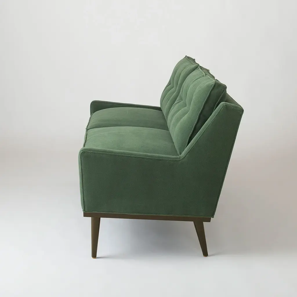 An ode to mid-century design, the perfectly petite Jack Sofa is typified by a thoroughly modern but understated elegance, with a presence that transcends its low-profile stature. Featuring a solid wood frame with splayed hardwood legs, low-slung arms, and subtly tufted cushions, this iconic sofa is an effortless and comfortable addition to any interior space. Crafted in the USA from ethically-sourced domestic and global components. A Schoolhouse Exclusive.