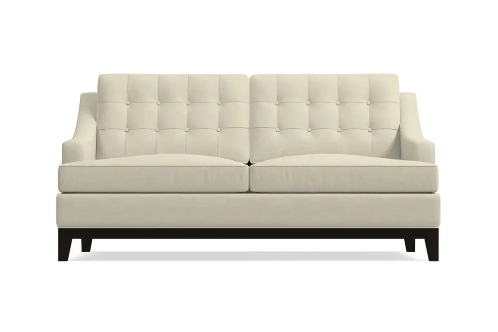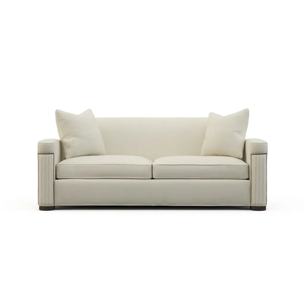 This stunning sofa is inspired by a unique 1940’s French Art Deco chair we found in Paris. Hand Crafted in North Carolina, our amazingly comfortable and stylish Jacques Sofa is a timeless addition to any room. Ships In 8-10 Weeks Two 21" square throw pillows Tight back Two looose seat cushions As Shown Fabric: Rayburn Oatmeal As Shown Finish: Antique Walnut If you choose to purchase COM, once you have placed your order a customer service rep will contact you regarding where to send your fabric. Please note that current lead time is 17-19 weeks once your fabric arrives at the factory, and if unused fabric is under 1.5 yards, it cannot be sent back to you.This product can be special ordered in additional fabrics, leathers, finishes, and cushion fillings. Click here to email us for for additional information about special ordering.This image is for illustrative purposes only. The colors shown are accurate within the constraints of lighting, photography, and the color accuracy of your screen.