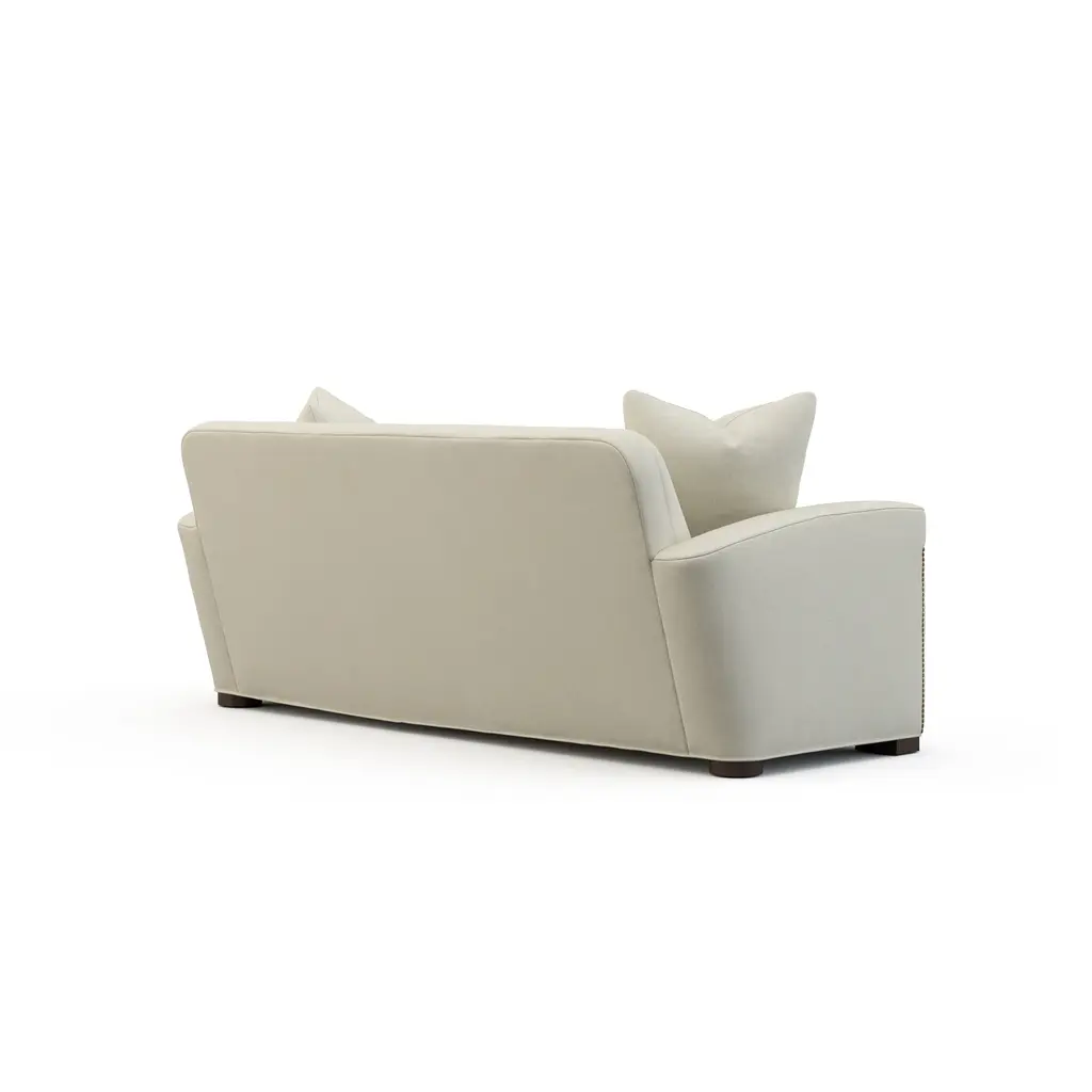 This stunning sofa is inspired by a unique 1940’s French Art Deco chair we found in Paris. Hand Crafted in North Carolina, our amazingly comfortable and stylish Jacques Sofa is a timeless addition to any room. Ships In 8-10 Weeks Two 21" square throw pillows Tight back Two looose seat cushions As Shown Fabric: Rayburn Oatmeal As Shown Finish: Antique Walnut If you choose to purchase COM, once you have placed your order a customer service rep will contact you regarding where to send your fabric. Please note that current lead time is 17-19 weeks once your fabric arrives at the factory, and if unused fabric is under 1.5 yards, it cannot be sent back to you.This product can be special ordered in additional fabrics, leathers, finishes, and cushion fillings. Click here to email us for for additional information about special ordering.This image is for illustrative purposes only. The colors shown are accurate within the constraints of lighting, photography, and the color accuracy of your screen.